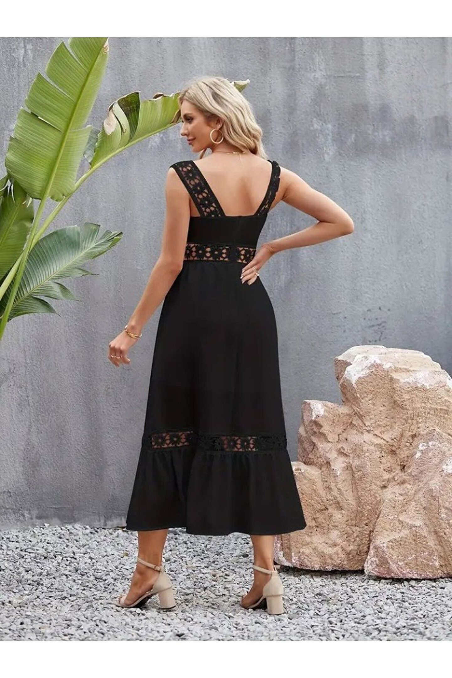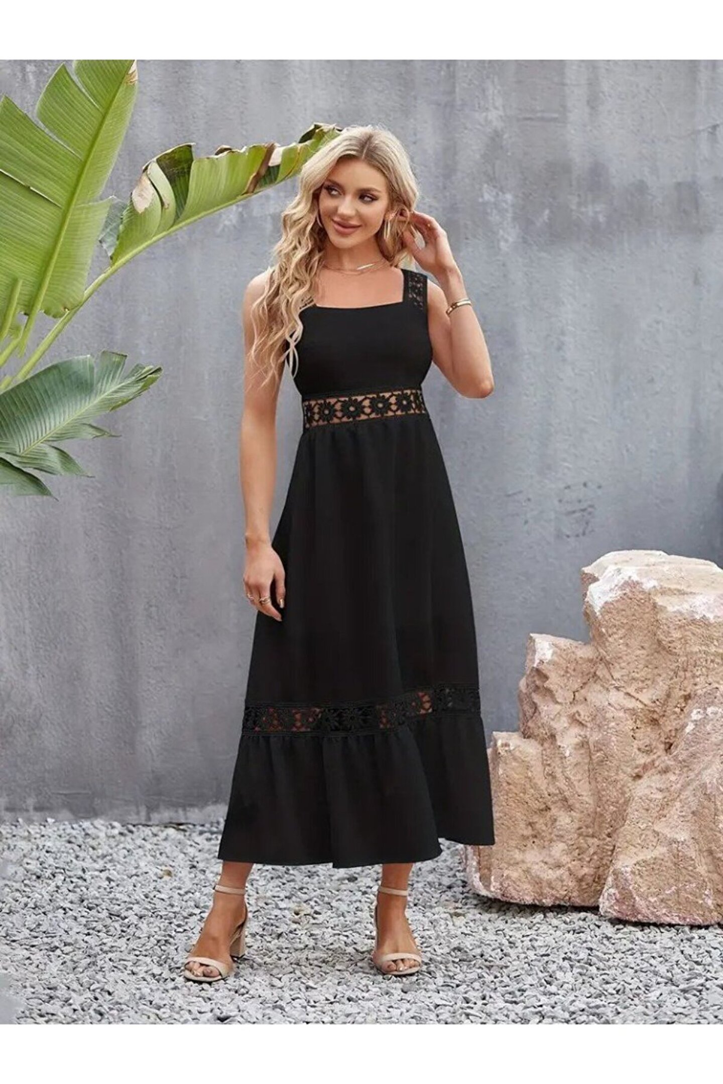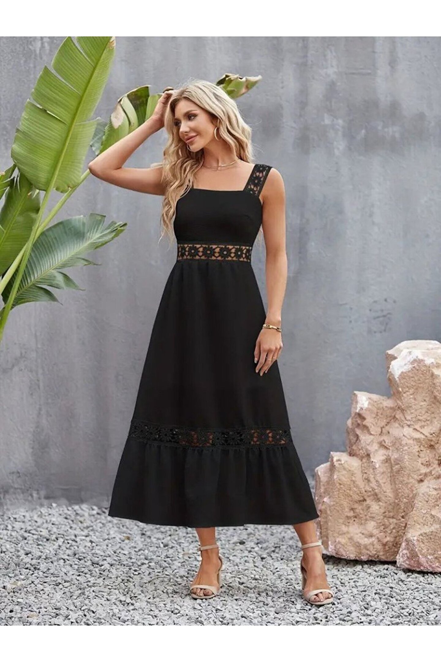 atelyu munn collection Kadın Askılı Dantel Detaylı Kiloş Janjan Krep Elbise