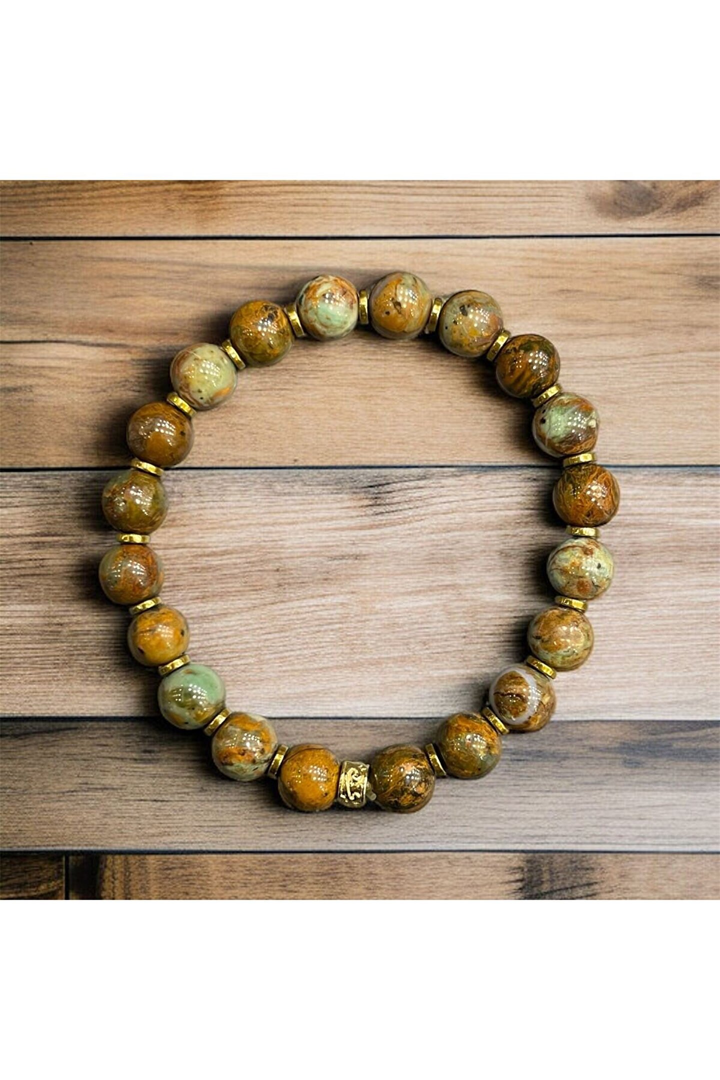 - Ürünümüz, doğal taşların özellik ve anlamlarını içeren açıklayıcı broşürümüz ve kutusu ile birlikte gönderilmektedir - Doğal taş kullanımıyla üretilmiş, her bir bileklik benzersiz bir doğa harikasıdır.; - 8mm çapındaki taşlar, hem şık hem de rahat bir kullanım sunar.; - Genç yaş grubuna hitap eden tasarımıyla, modern ve dinamik bir aksesuar seçeneği sağlar.; - Unisex tasarımı sayesinde hem kadınlar hem de erkekler tarafından rahatlıkla tercih edilebilir.; - Türkiye menşeli olması, yerel üretim desteklenerek kaliteli ürünlere ulaşmanızı sağlar.; - Krizokol, kişinin iletişim gücünü arttırır.; Zihinsel problemleri ortadan kaldırmaya yardım eder.; Taşıyanı akıl, zeka kıvraklığı ve güçle motive eder.;