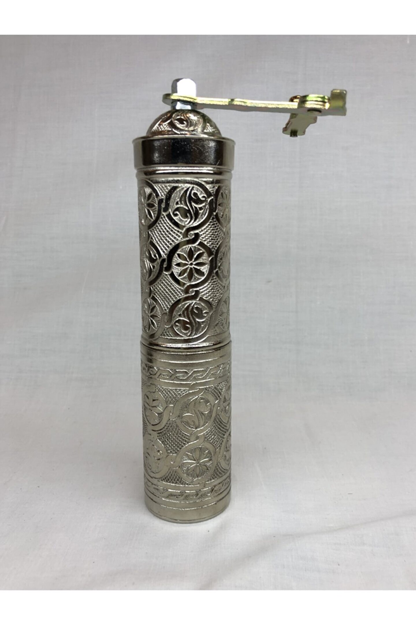 Osmanlı motiflerle süslü kahve karabiber kaya tuzu değirmeni dekoratif uzun öğütücü parlak gümüş renkli %100 orjinaldir %100 yerli üretimdir %100 el yapımıdır Piyasadaki sahte çin malı ürünlerden kesinlikle değildir uzun yıllar sorunusuzca Kullanabilısiniz Dekotat I F ama Ç Lı kullanab I L I Rs I N I Z Masalarınıza ayrı b I R renk katar Osmanlı motiflli otantik dış yüzeyiyle ev, ofis yada iş yerinize ayrı bir hava katacaktır? Ilk kullanımda iç mekanizmanın temizlenmesi için pirinç kullanınız.. ; Bulaşık makinesinde yıkamanız tavsiye edilmez. ; El yapımı, tamamen el işçiliği ile yapılmıştır Tarihi türk osmanlı değirmenleri ile yılların kalitesi 1. ; Kalite ve uzun ömürlü Yıllarca dayanabilen aksamlar Kararmaya karşı sirkeli suyla temizlendiğinde ilk günkü görüntüsüne kavuşacaktır. ; Ürünün özellikleri : Ürünün cinsi : zamak Ürün ölçüleri : Toplam uzunluk : 209mm / 8.25' Gövde uzunluğu : 141mm / 5.55' Gövde genişliği : 34mm / 1.34' Gövde ağzı genişliği : 31mm / 1.19' Çekme kolu uzunluğu : 138mm / 5.43' Alt depo uzunluğu : 87mm / 3.41' Alt depo genişliği : 46mm / 1.81' Toplam ağırlık : 587 gram / 20.7 oz Mevcut renkler : Gümüş, antık brass (haki), antık cooper Temizlerken kesinlikle çamaşır suyu, başka bir çözücü gibi kimyasal ürünler kullanmayınız. ; Kullanım amacı dışında (tuz karabiber pirinc) Kullanmamaya özen gösteriniz.;