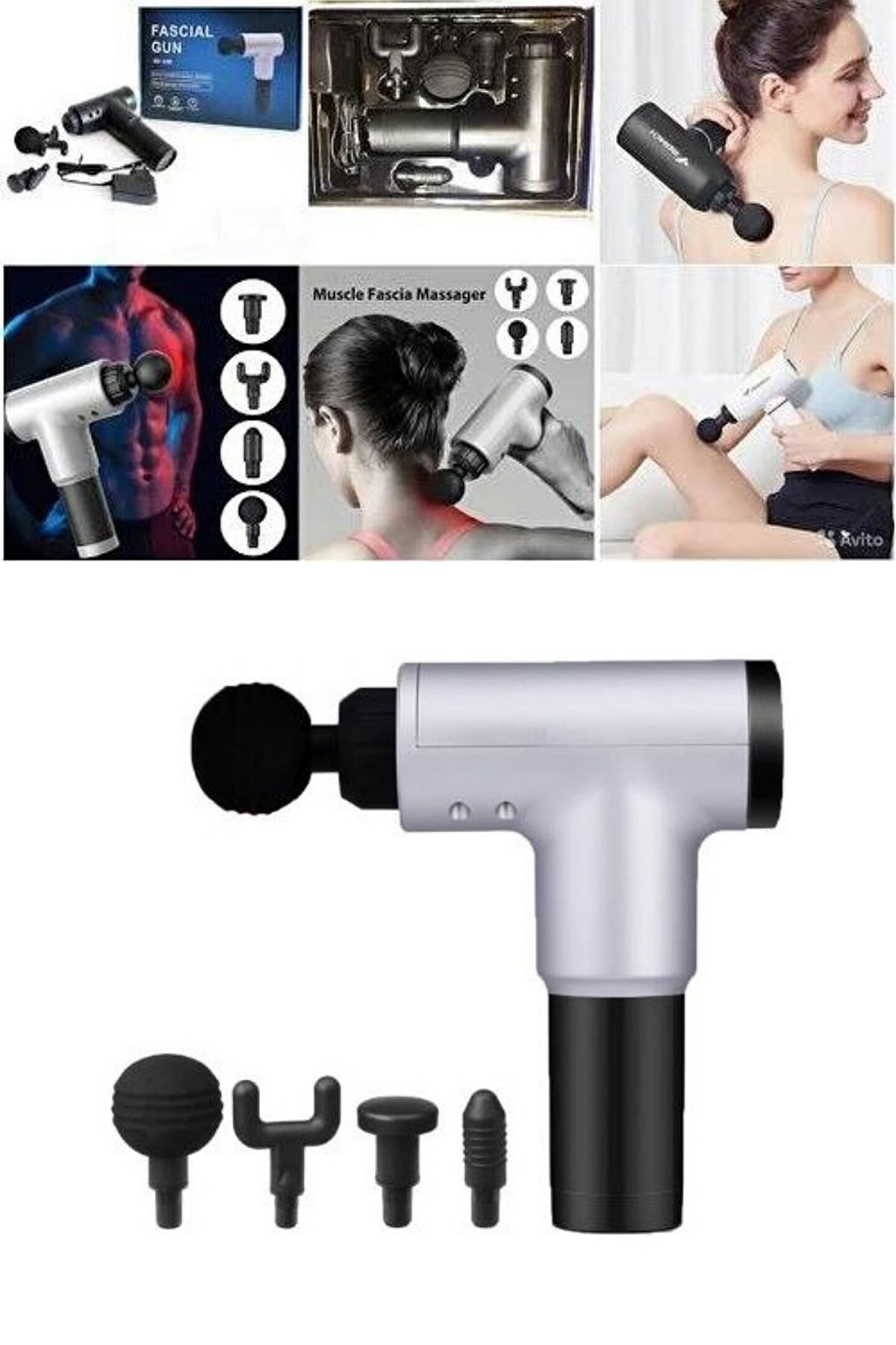 Fascial Gun KH; 320 Masaj Aleti, kas ağrısını azaltmak, kan dolaşımını artırmak ve sert bir çalışmadan veya uzun süreli bir egzersizden sonra eklem ağrısını azaltmak için kullanılır; Fascial Gun KH; 320 kas masaj aleti, masaj elemanının belirli bir genlik, titreşim frekansı ve torkunu birleştiren bir titreşim terapisi yöntemi kullanır; Etki, ağrıya neden olmayan tendonların, kas dokusunun ve fasyaların iç katmanlarına etki ederek elde edilir; Masaj şeklinde ergonomik bir şekilde yapılır, elde rahatça oturur, kullanımı uygundur; Kitte bacakların, kasların, göğsün, bileklerin ve bileklerin belli kas gruplarını etkileyen 4 başlık vardır; Seansın optimal süresi 15 dakikadır, dahili batarya ile çalışır; Özellikler: Malzeme: ABSVoltaj: AC 110; 220 V, 50/60HzGüç: 20 ~ 30 WRenk: Siyah/GriMasaj Başlıları: 4Pil kapasitesi: 2500 mAhDayanıklılık süresi: 2 saatVites Ayarı : 6Boyut: 220x218x50mm Paket içeriği:1 x Elektrikli Masaj x Masaj Başlığı1 x Şarj Cihazı1 x Kullanım Kılavuzu ;;