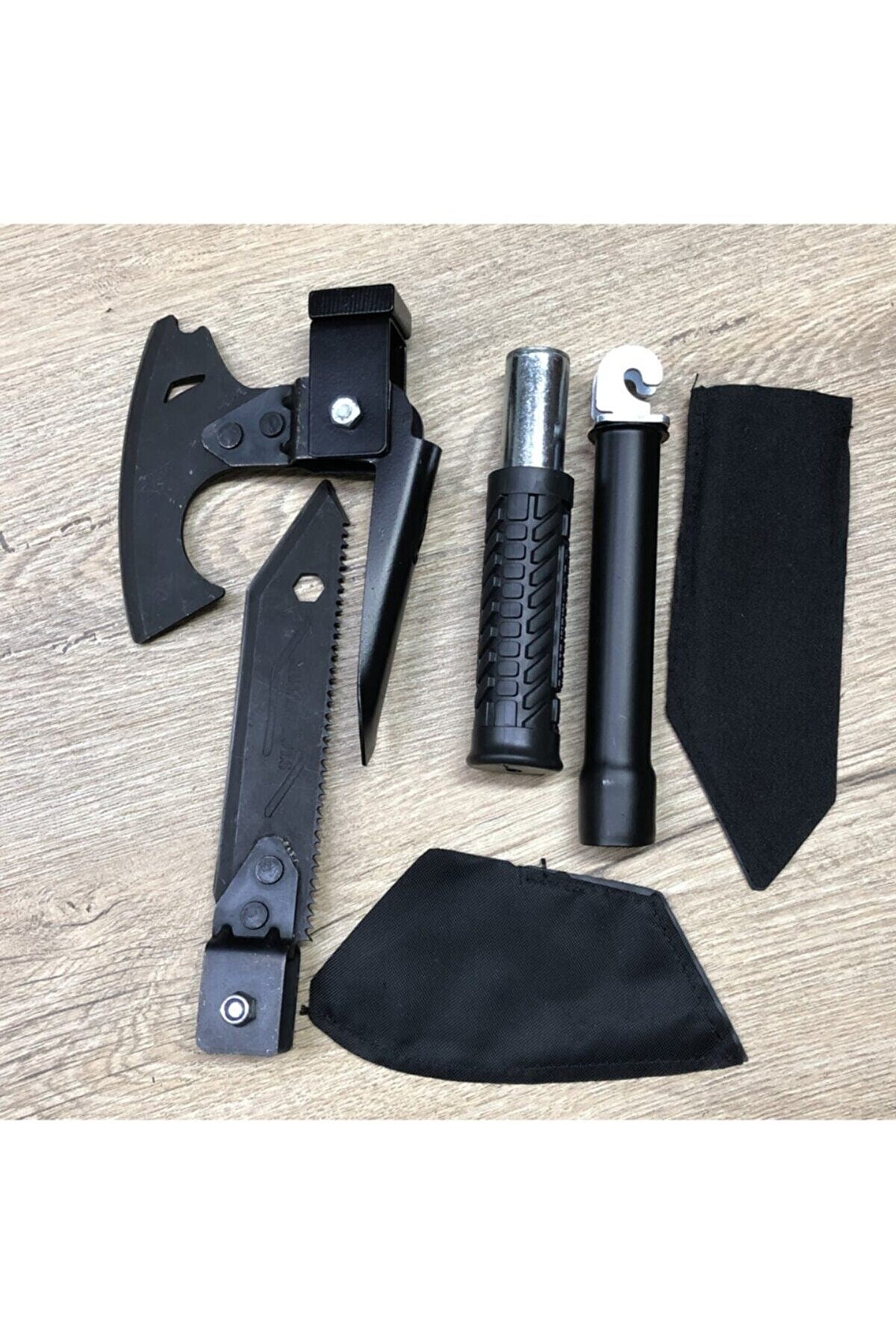 Axe Tools Süper Pratik Sökülüp Katlanan Minik Askeri Çelik Balta Çekiç Çapa Bıçak Testere Seti