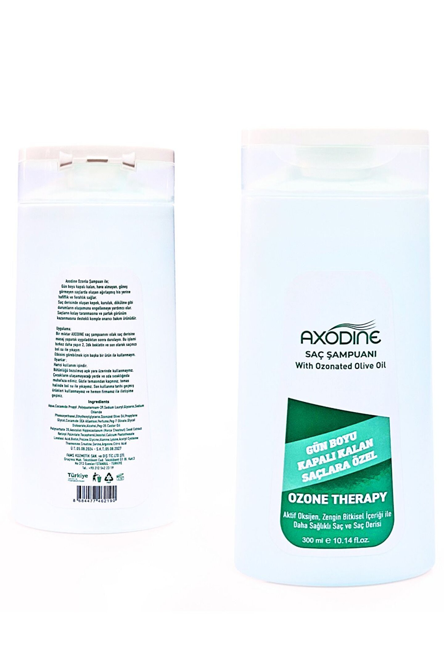 Axodine Kapalı Saçlara Özel Ozon Şampuan – Ferahlatıcı ve Arındırıcı Bakım 300 ml Axodine Kapalı Saçlara Özel Ozon Şampuan, saç ve saç derisini derinlemesine arındırmak, ferahlatmak ve gün boyu temiz his sağlamak için geliştirilmiş özel bir formüldür.; Kapalı saçlarda sık görülen hava alamama, yağlanma, ve kötü koku problemlerine karşı etkili bir bakım sunar.; Saç tellerini güçlendirir, saç derisini dengeler.; Ozon desteğiyle zenginleştirilmiş içeriği, saç derisindeki gözenekleri arındırarak ferahlık sağlar.; Saç köklerini besler, saç tellerini yumuşatarak kolay tarama imkânı sunar.; Kapalı saç kullananların günlük bakım rutininde güvenle tercih edebileceği şekilde geliştirilmiştir.; İhtiyaç duyan herkesin kullanabileceği şekilde formüle edilmiştir.; Kullanım Talimatı: Islak saça masaj yaparak uygulayın, köpürttükten sonra durulayın.; İhtiyaç halinde tekrarlayın.; Günlük kullanıma uygundur.; Düzenli kullanımda saç telleri güçlenir, saç derisi daha dengeli bir yapıya kavuşur ve saçın canlılığı artar.; Öne Çıkan Özellikler: