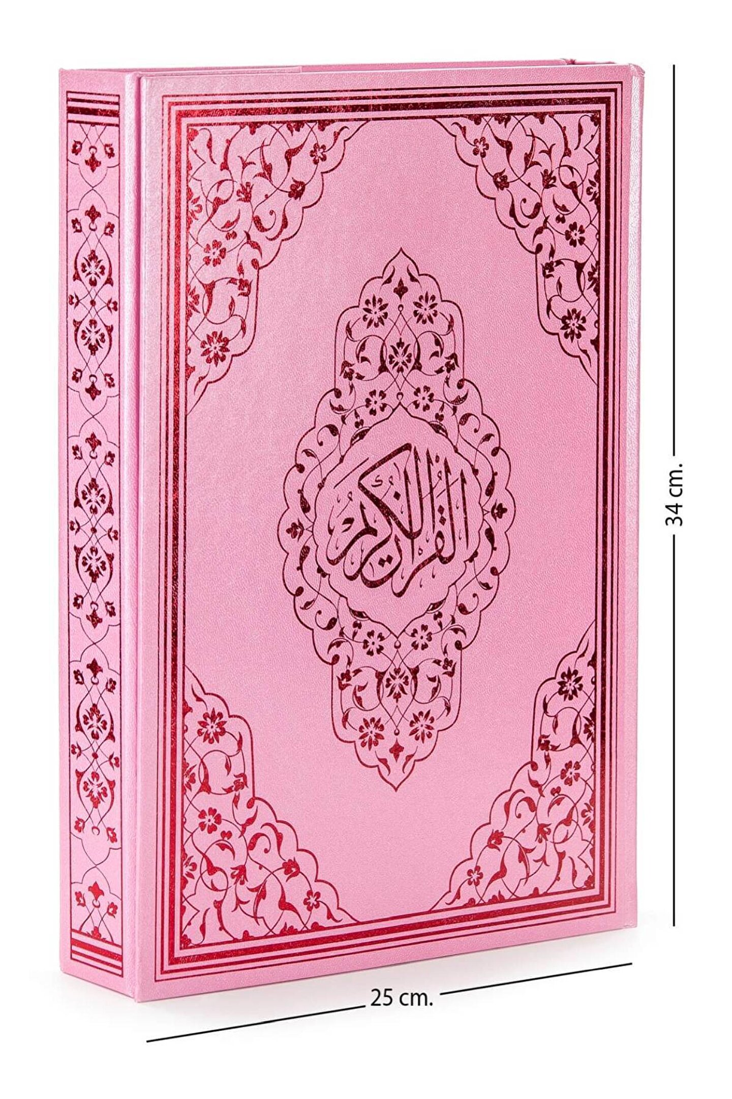 Özellikler: Kuranı Kerim 25x34 cm Cami Boy. ; Gül desenli tasarımıyla pembe Kuranı Kerim. ; Lüks ciltli KUR'AN'dır. ; Diyanet İşleri Başkanlığı Mushafları İnceleme ve Kıraat Kurulu'ndan Onaylı ve Mühürlü Hafız Osman Hattına Sadık Kalınarak Sayfa Tutar, Berkenar, Secavendli, Medli ve Kasırlı Olarak Hazırlanmıştır. ; Milyonlarca insanın Kur'ân-ı Kerim okumasını öğrendiği hattan. ; BİLGİSAYAR HATLI ve OKUMASI KOLAYDIR. ; KUR'AN'IN sadece ARAPÇASI VARDIR. ; Telefonunuza indireceğiniz barkod programı ile (Google Play ve App Store) sesli olarak hem meal, hemde arapça dinleyebilirsiniz. ; 1. ; Hamur Şamua kağıda baskılıdır. ; Hafif sarımsı kağıttır. ; Görseller kendi stüdyomuzda, kendi fotoğrafçımız tarafından çekilmiştir. ; Ürünün aynısı gelecektir. ; AYFA yayınları KURANI KERİM.;