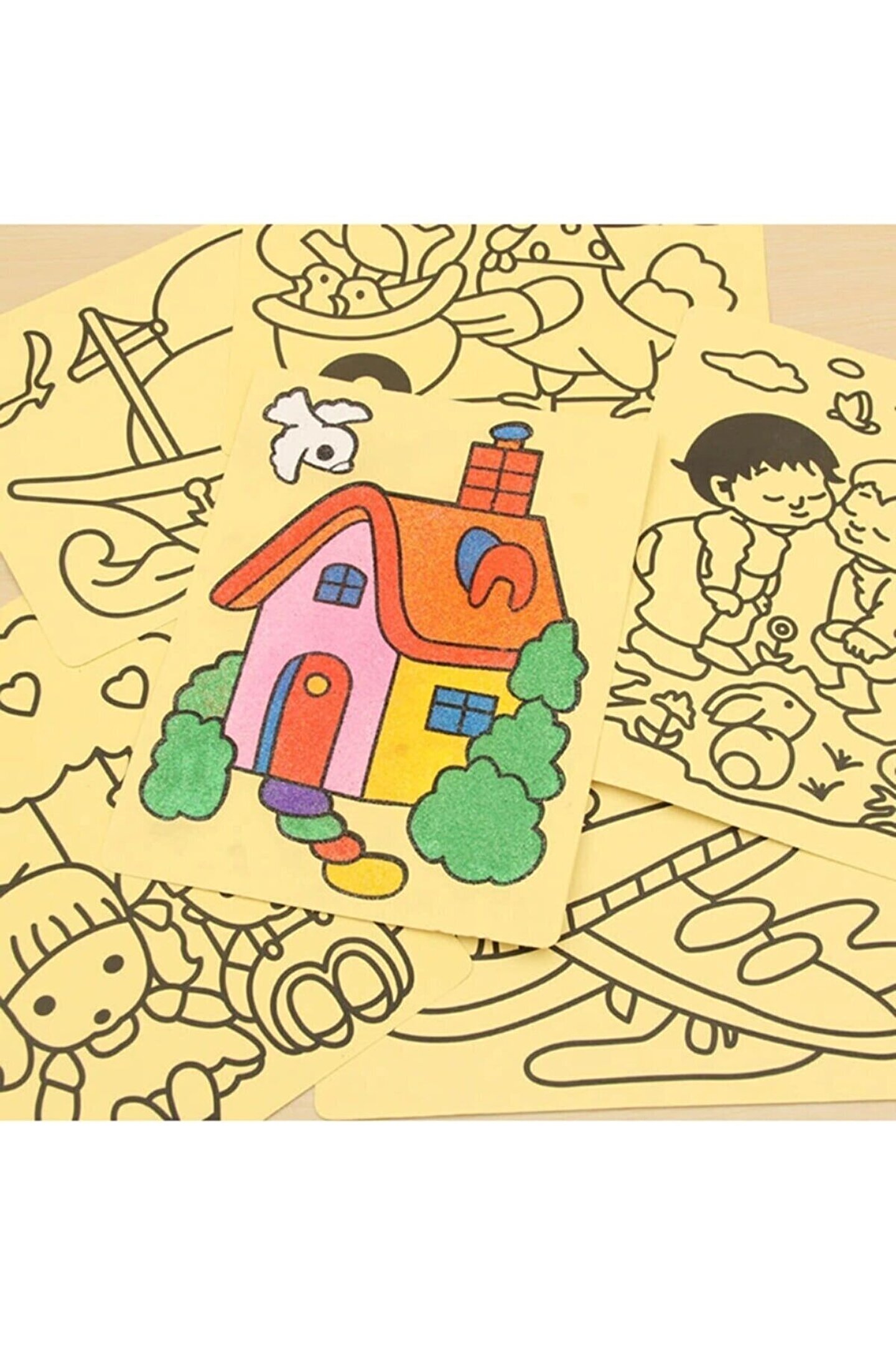 1Kum Boyama Seti; 50 Adet A4 boyutunda kum boyama seti Kendinden yapışkanlı kum boyama kağıtları ile hem daha keyifli hem de daha yaratıcı resimler; Çocukların gelişimine katkı sağlar; Almış olduğunuz her setin içerisinden bir adet yapışkanlı desen kağıdı, 10 renk kum ve bir adet uygulama kürdanı çıkmaktadır; Anaokulu etkinlikleri ve uygulama günleri için çok ideal bir ürün; El becerilerini arttırır; Zeka gelişimini ve destekleyici bir eğitim ve zeka oyunudur; Ürün Ölçüleri Uzunluk: 28 cm Genişlik: 20 modellerde ve en az 10 farklı modelde gönderilir; 50 ;;