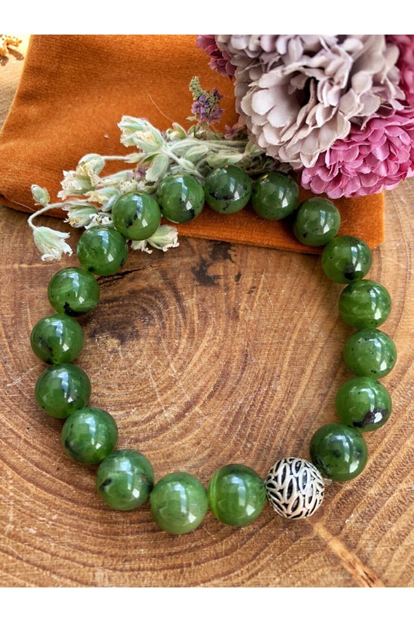 Doğal yeşim taşı kullanılarak üretilmiş, zarif ve şık bir aksesuar; Gümüş kaplama ile zenginleştirilmiş, göz alıcı bir parlaklık sunar; El yapımı olması, her bir bilekliğin benzersiz ve özgün bir tasarıma sahip olmasını sağlar; Günlük kullanım için idealdir; hem rahatlığı hem de şıklığı bir arada sunar;