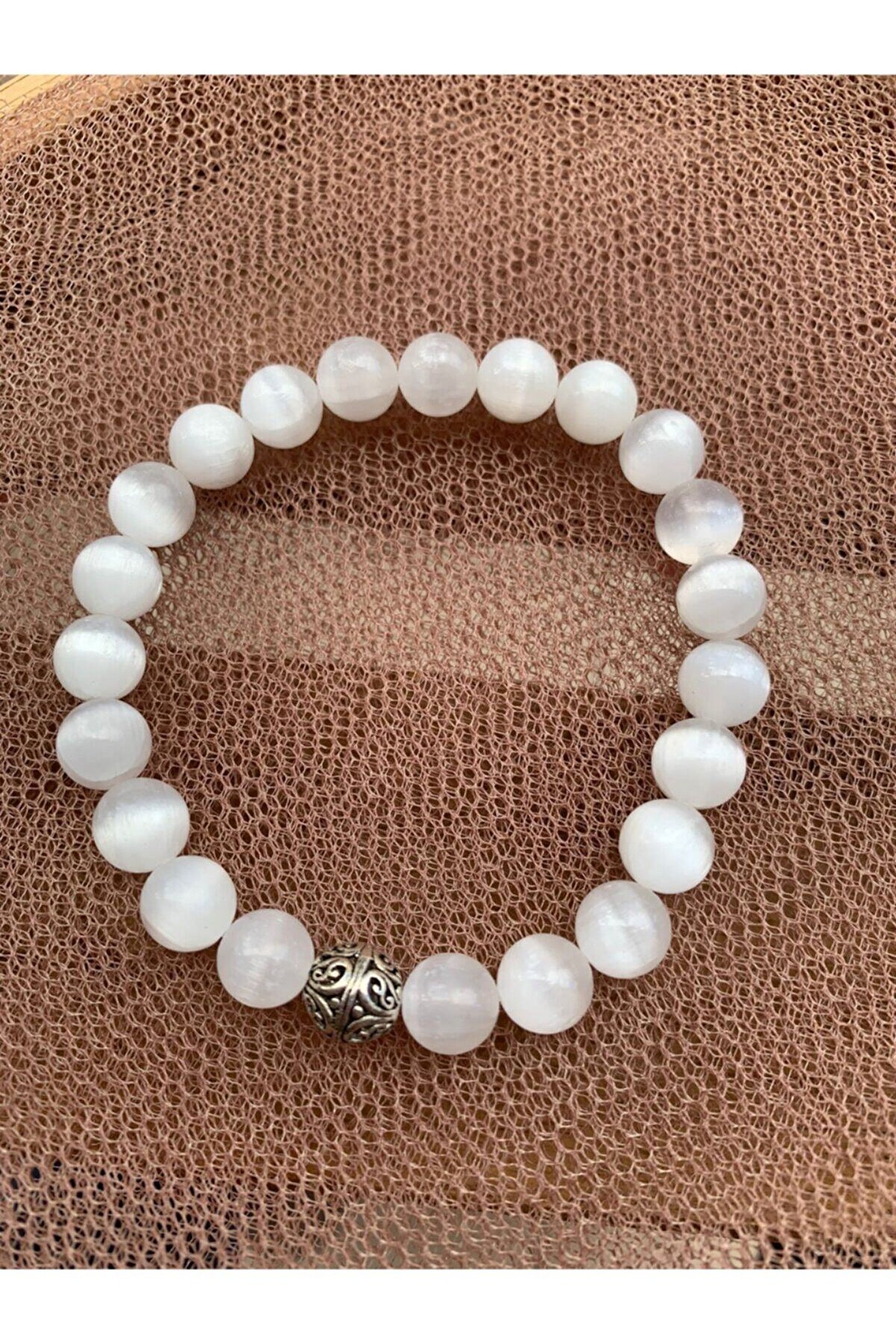 - Doğal taş kullanımı sayesinde her bileklik benzersiz ve otantik bir görünüm sunar; - Selenit taşı, zarif ve şık tasarımıyla dikkat çekerken, bileklerinize doğal bir ışıltı katar; - El yapımı olması, her bir bilekliğin kendine özgü bir karaktere sahip olmasını sağlar; - Selenit taşı, enerjiyi dengelemeye yardımcı olur ve pozitif bir etki yaratır;