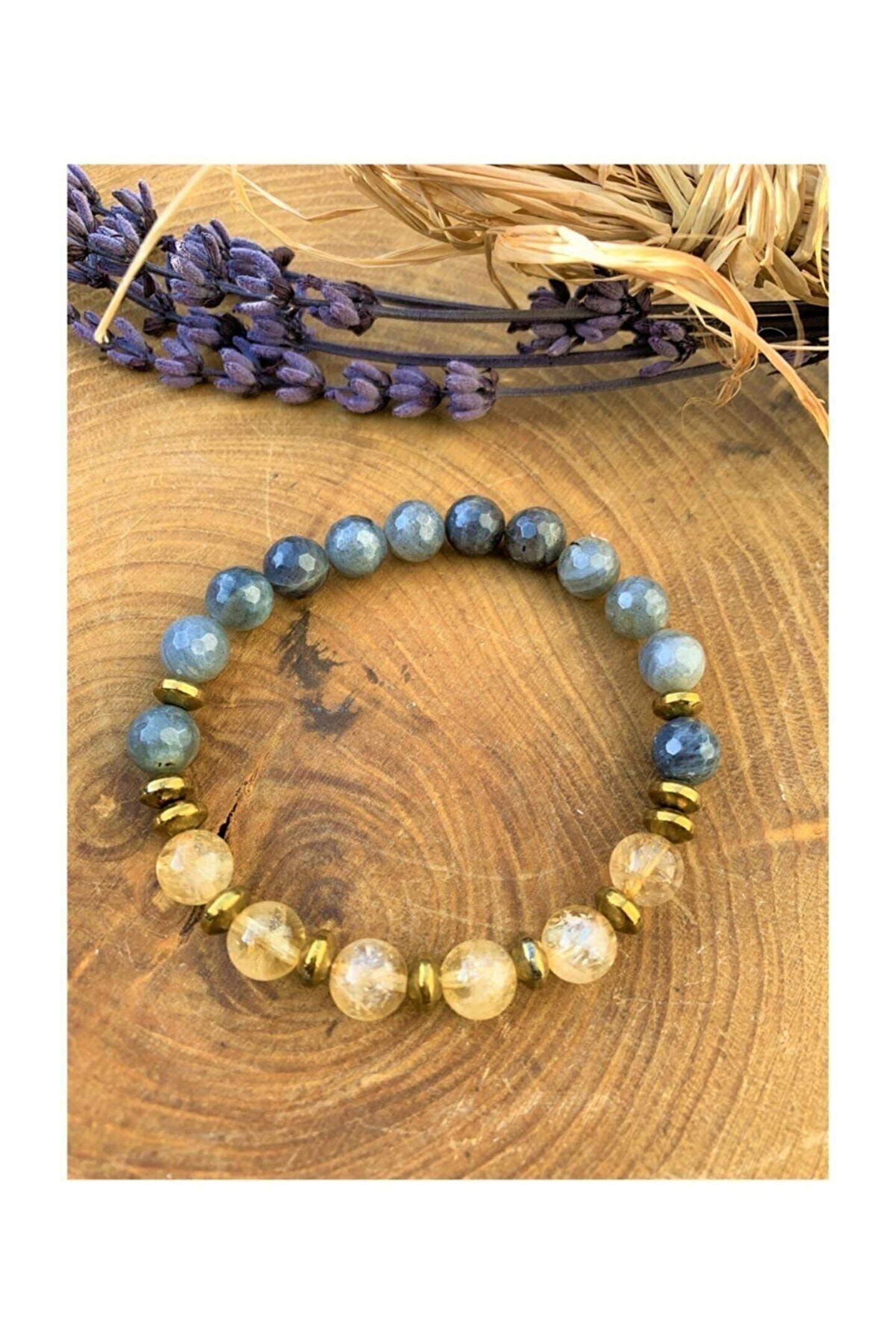 Doğal taş kullanımı sayesinde her bileklik benzersiz ve otantik bir görünüm sunar; Sitrin labradorit ve hematit kombinasyonu, bilekliğe zarif bir parlaklık ve renk kontrastı katar; Doğal taşların şık tasarımıyla günlük kullanım için ideal bir aksesuar seçeneği oluşturur; Hem dayanıklı hem de estetik açıdan hoş olan bu bileklik, uzun süreli kullanım için uygundur;