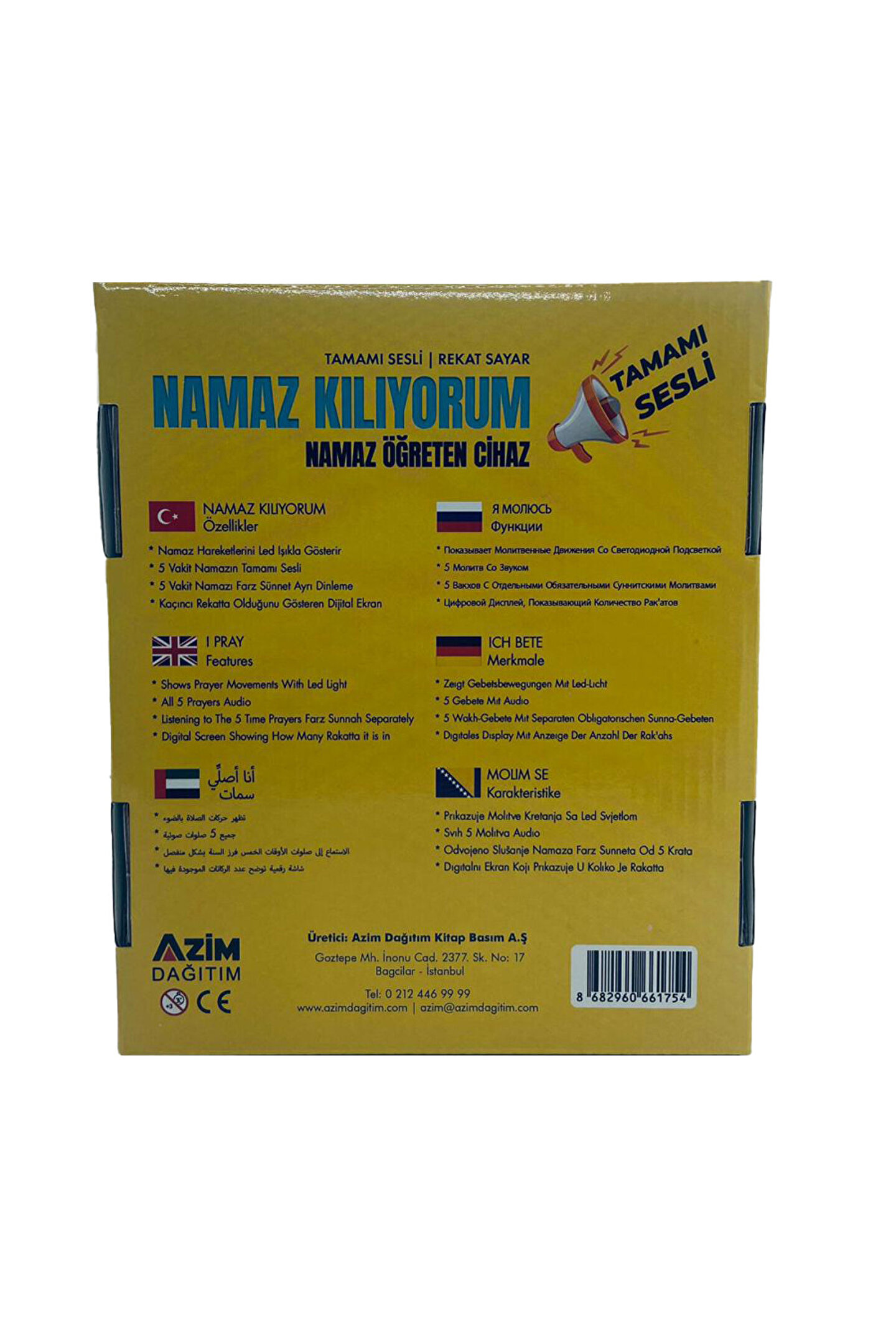 Her Yaş İçin uygundur.; Namaz Kılıyorum Özellikleri ; Namaz Hareketlerini Led Işıkla Gösterir ; 5 Vakit Namazın Tamamı Sesli ; Kaçıncı Rekatta olduğunu Gösteren Dijital Ekran ; ;