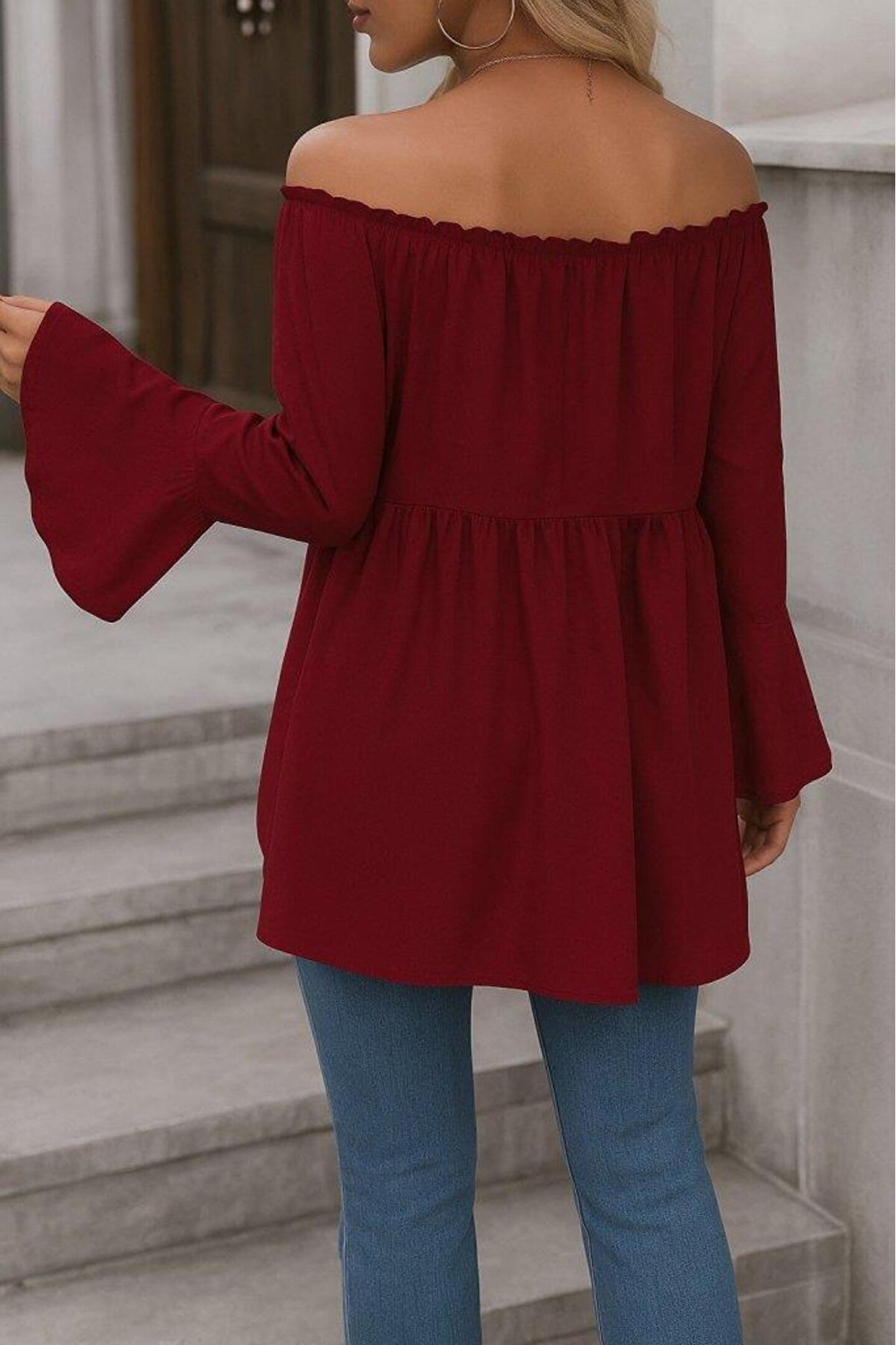 babatr.com Kadın Uzun Kollu Madonna Yaka Asimetrik Detaylı Kolları Ispanyol Viskon Bluz