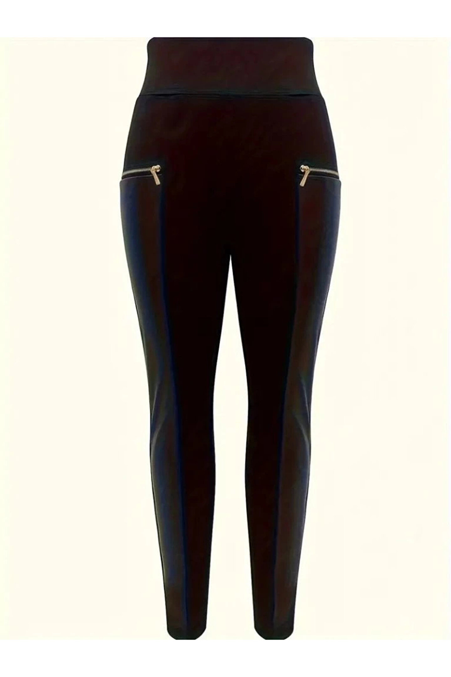 babatr.com Kadın Yüksek Bel Deri Detaylı Fermuarlı Dalgıç Tayt