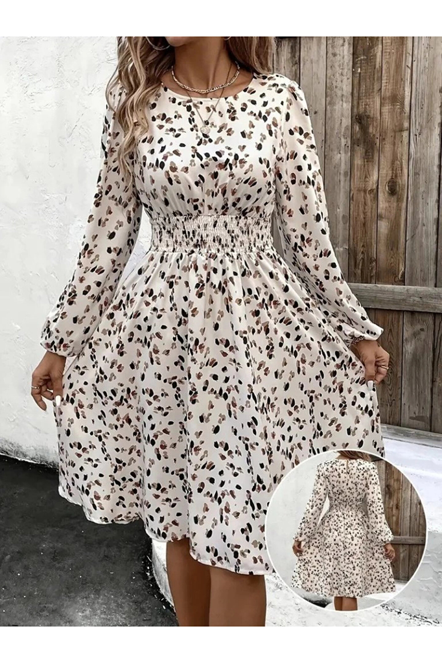 babatr.com MDB Kadın Uzun Kollu Bot Yaka Beli Lastikli Midi Süprem Elbise