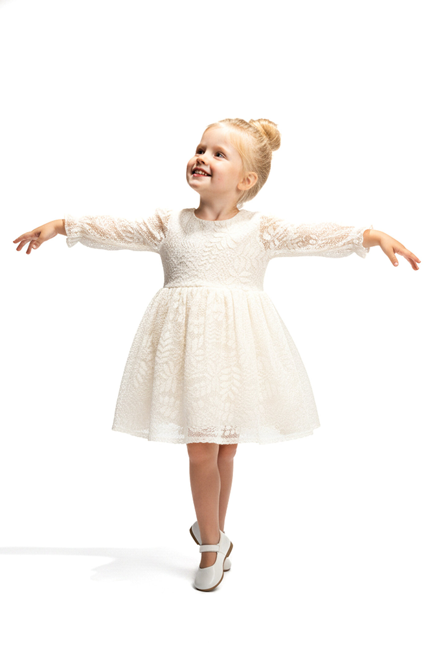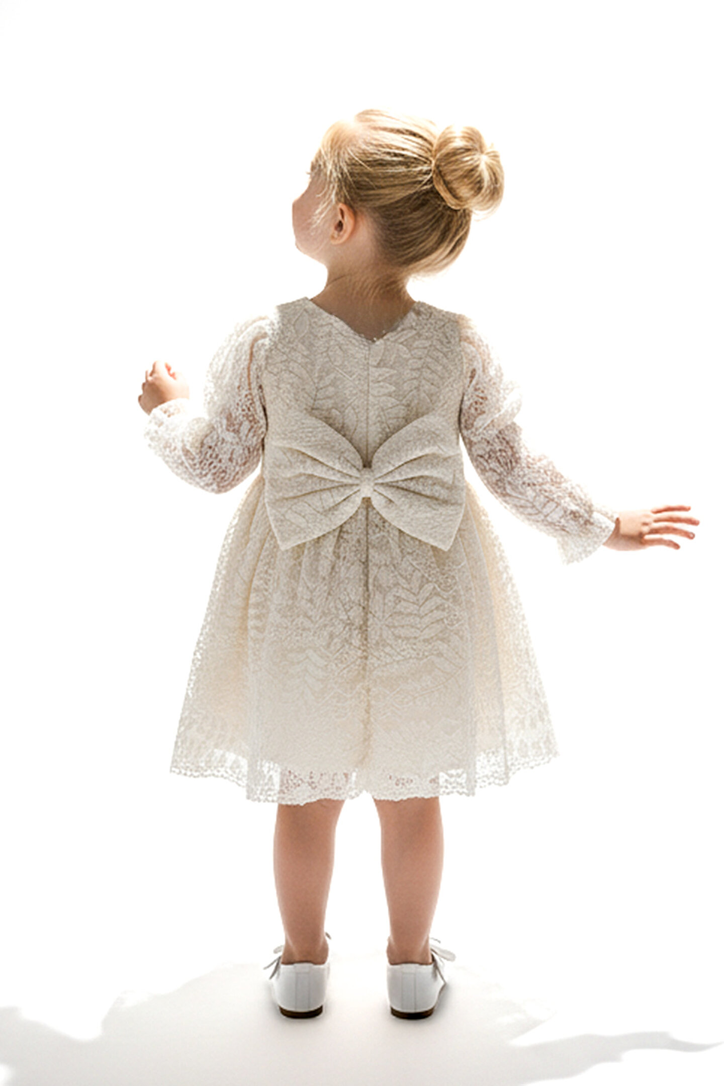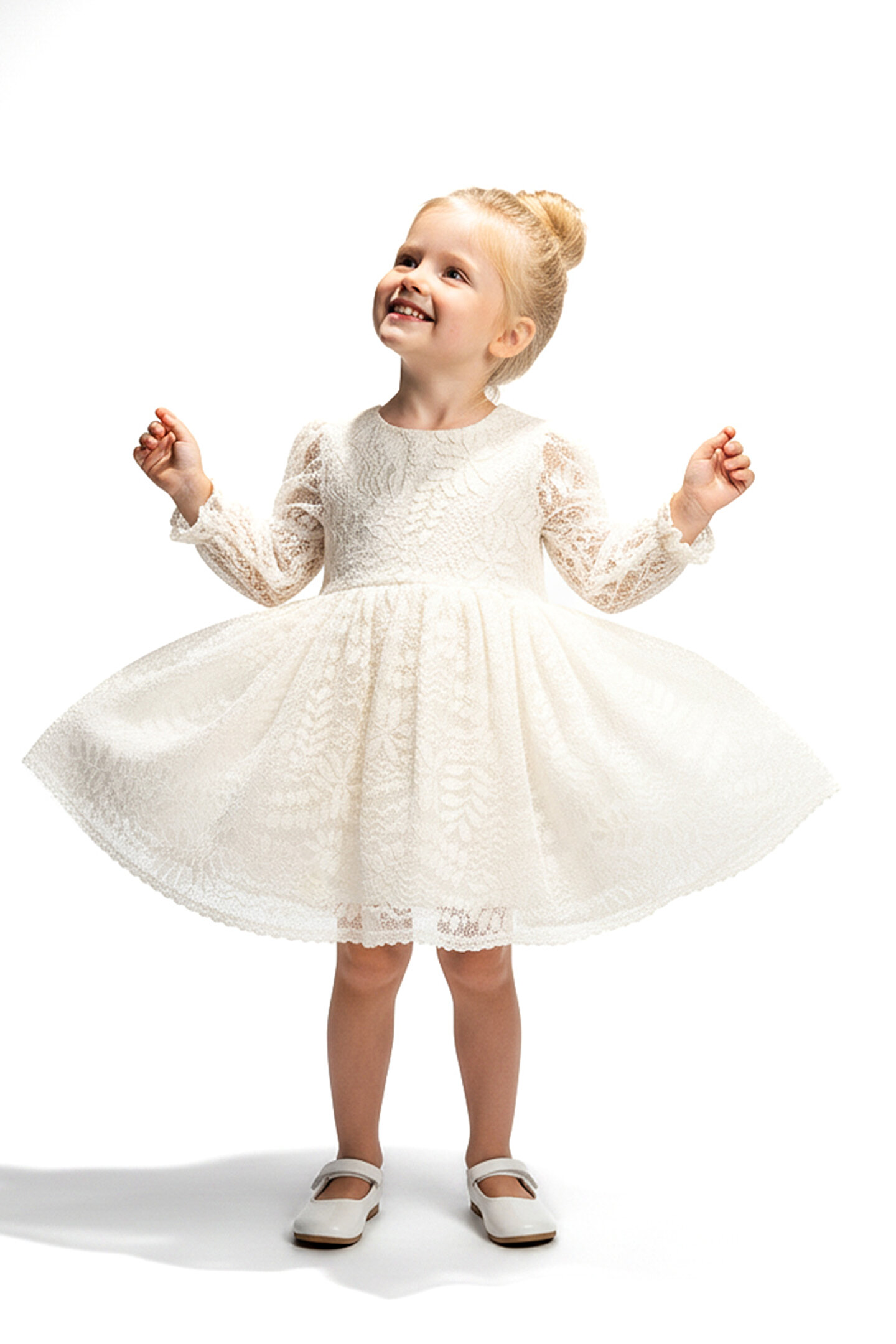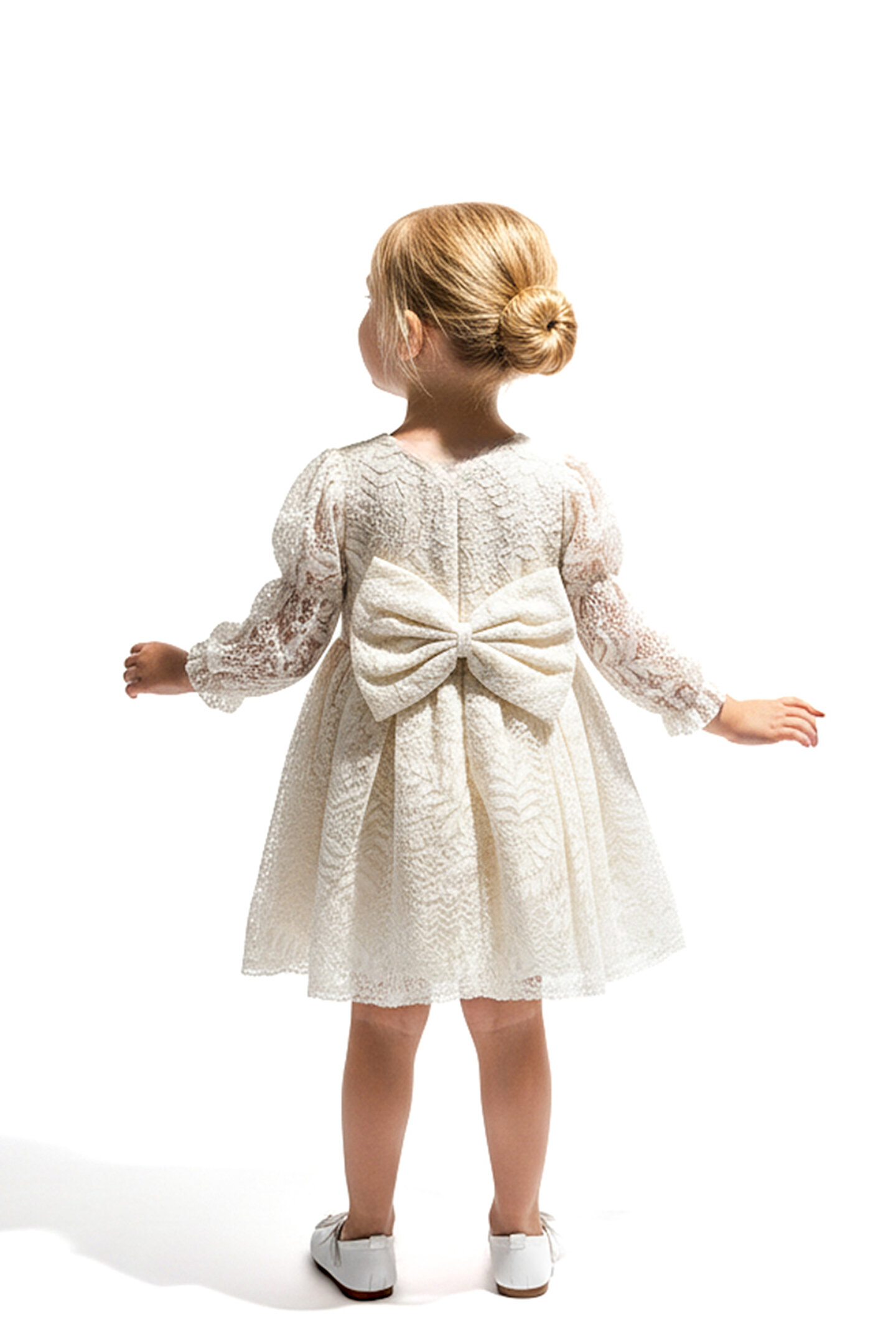 Baby Animals Kız Bebek Elbise Kız Çocuk Elbise Dantelli Doğum Günü Parti Düğün Özel Gün Uzun Kol Astarlı Fiyonklu