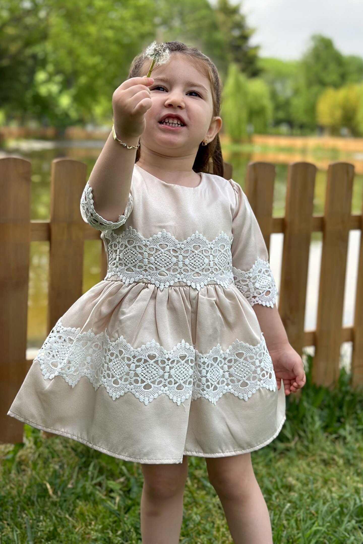 "Yazlık Kısa Kollu Dantel Detaylı Kız Çocuk Elbisesi: Küçük prensesinizin yaz mevsiminde özel günlerde zarafetini ve şıklığını ön plana çıkaracak bu elbise, önünde bulunan fiyonk detayı ve dantel işlemeleriyle tasarlanmıştır. ; Ayrıca etek kısmında bulunan yırtmaç detayı, hareket özgürlüğü sağlarken bebeğinizin zarif bir görünüm sergilemesini sağlar. ; Özellikler: Dantel Detaylar: Elbisenin ön kısmında ve kollarda bulunan dantel detaylar, zarafet ve incelik katarken, küçük prensesinizin görünümünü daha etkileyici hale getirir. ; Önünde Fiyonk Detayı: Elbisenin ön kısmında bulunan fiyonk detayı, sevimliliği ve şıklığı artırır. ; Küçük prensesinizin görünümüne hoş bir dokunuş ekler. ; Yırtmaç Detayı: Etek kısmında bulunan yırtmaç detayı, hareket özgürlüğü sağlarken, elbisenin tasarımına dinamizm katar. ; Kısa Kollu Tasarım: Sıcak yaz günlerinde rahatlıkla giyilebilecek kısa kollu tasarım, bebeğinizin serin kalmasını sağlar ve özgürce hareket etmesine olanak tanır. ; Yazlık Kullanıma Uygun: Hafif yapısı ve nefes alabilen kumaşıyla yaz aylarında rahatlıkla giyilebilir. ; Özel Günler İçin Uygun: Özel günlerde tercih edilebilecek şık tasarımıyla bebeğinizin her anında göz kamaştırmasını sağlar. ; Bu yırtmaçlı, önü fiyonklu ve dantel detaylı kısa kollu kız çocuk elbisesi, küçük prensesinizin yazın serin ve şık kalmasını sağlarken, aynı zamanda özel günlerde de zarafetini tamamlar. ; Zarif detaylarıyla bezenmiş bu elbise, bebeğinizin tarzını ve güzelliğini ön plana çıkarır.";