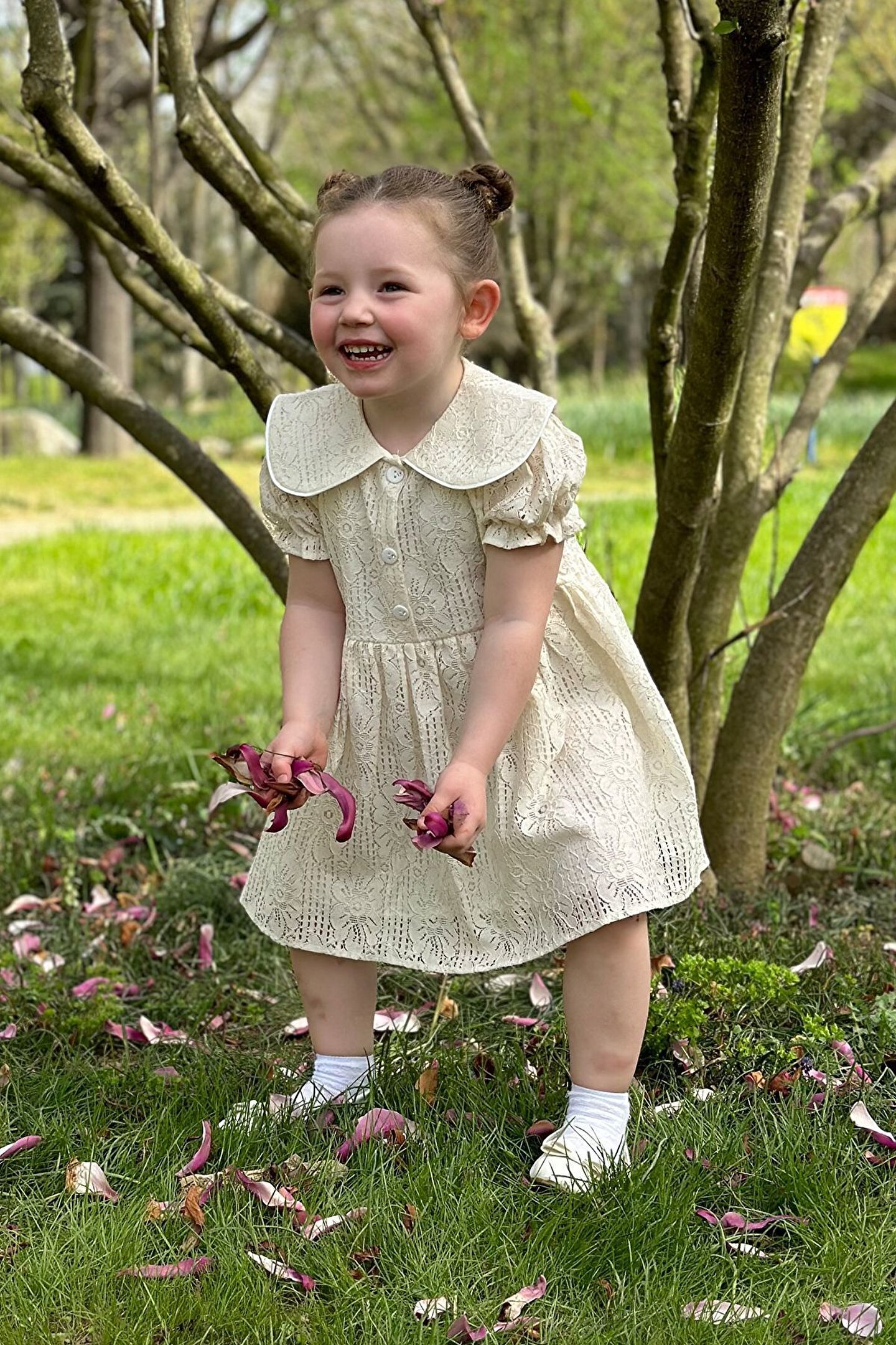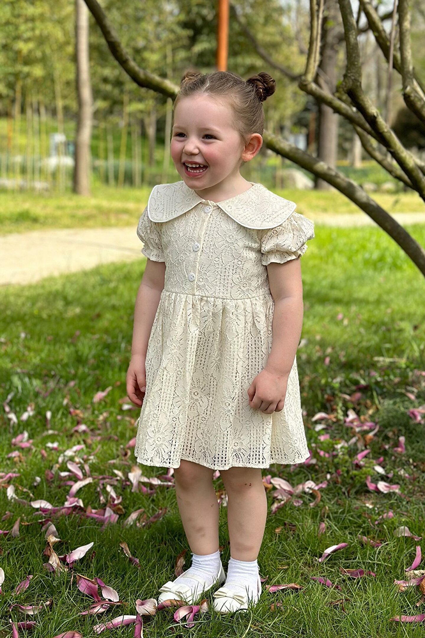 Yazlık dantelli kısa kollu kız çocuk özel gün elbisesi: Küçük prensesinizin özel günlerinde zarafetini ve şıklığını ön plana çıkaracak bu elbise, dantelli detayları ve kısa kollu tasarımıyla göz alıcı bir görünüm sunar. ; Yazın serin ve rahat kalmasını sağlayan hafif yapısıyla öne çıkar ve özel günlerdeki zarafetini tamamlar. ; Özellikler: Zarif dantel detayları: Elbisenin üzerindeki dantel detayları, küçük prensesinizin görünümüne zarafet ve incelik katar. ; Özel günlerdeki parıltısını artırır. ; Kısa kollu tasarım: Sıcak havalarda bile rahatlıkla giyilebilecek kısa kollu tasarım, bebeğinizin serin kalmasını ve özgürce hareket etmesini sağlar. ; Yakalı kesim: Elbiseye daha sofistike bir hava katar ve küçük prensesinizin zarafetini vurgular. ; Hafif ve nefes alabilen kumaş: Yaz aylarında rahatlıkla giyilebilecek hafif ve nefes alabilen kumaşı, bebeğinizin konforunu maksimum düzeyde tutar. ; Özel günler için uygun tasarım: Doğum günleri, düğünler, mezuniyet törenleri gibi özel günler için ideal olan bu elbise, küçük prensesinizin her anında göz kamaştırmasını sağlar. ; Farklı renk seçenekleri: Bebeğinizin tarzına ve zevkine uygun renk seçenekleri arasından tercih yapabilirsiniz. ; Bu dantelli kısa kollu kız çocuk özel gün elbisesi, küçük prensesinizin yazın zarif ve rahat olmasını sağlar. ; Sofistike yakalı kesimi ve dantel detaylarıyla tamamlanan bu elbise, onun unutulmaz anlar yaşamasını sağlar.;