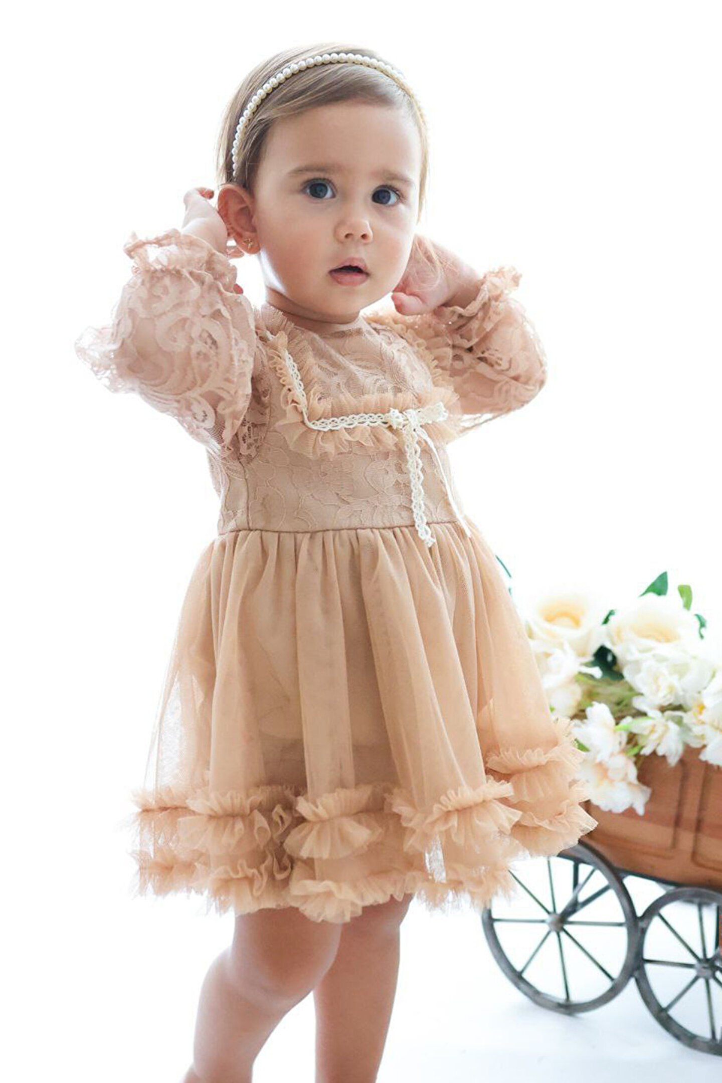 Kız Bebek Elbise Kız Çocuk Elbise Doğum Günü Parti Düğün Elbise Dantelli Uzun Kol Astarlı Elbise