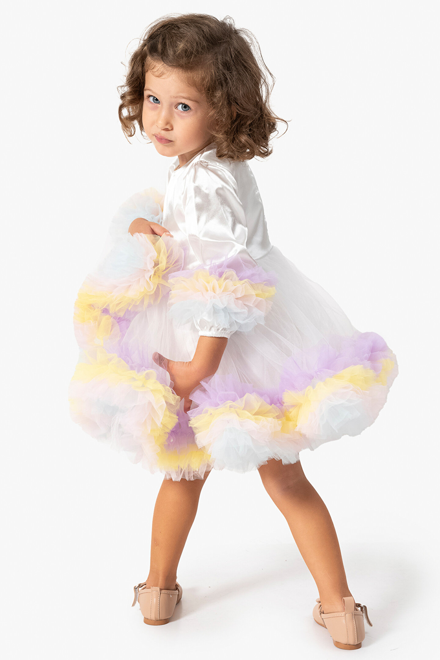 Yazlık Elbise Kısa Kollu Tüllü Tütü Astarlı Kız Çocuk Elbise Bebek Giyim Kız Bebek Elbise