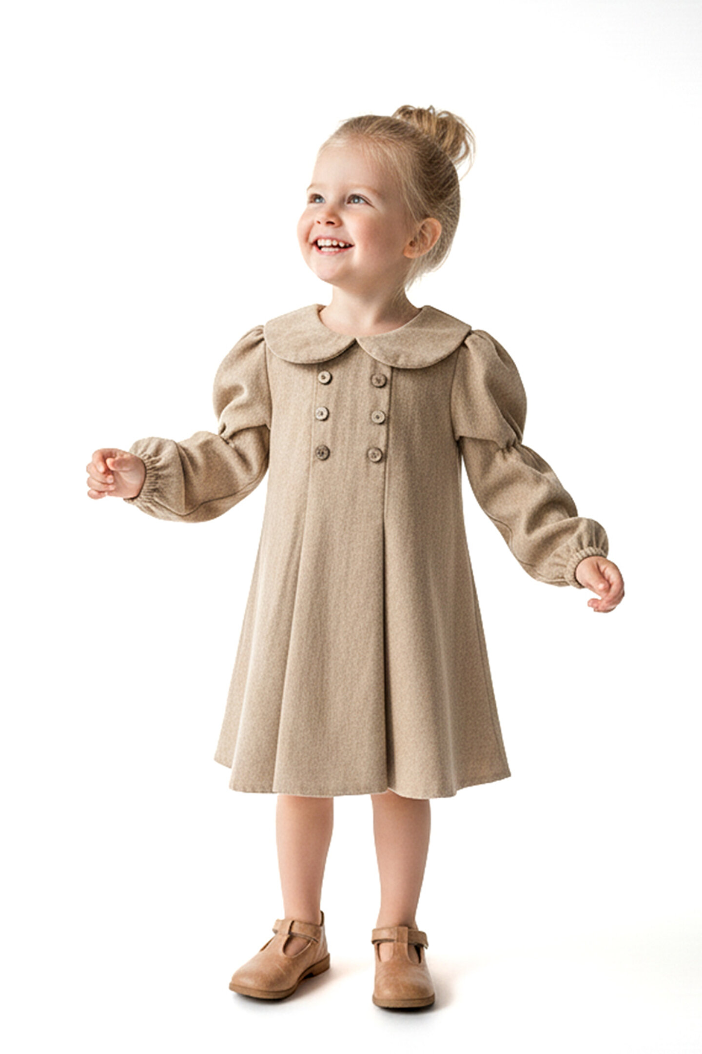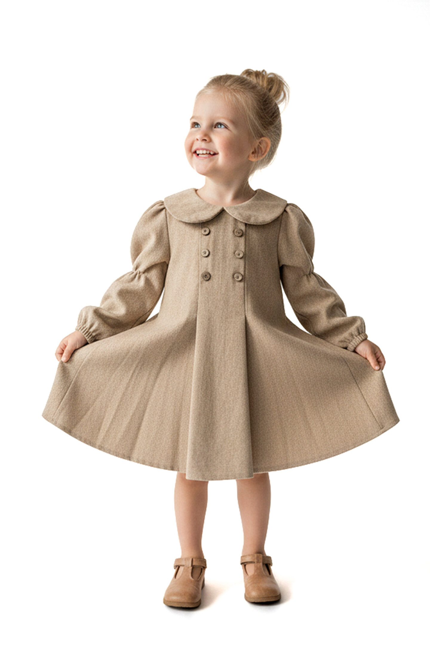 Baby Animals Kız Bebek Elbise Kız Çocuk Elbise Keten Doğum Günü Parti Düğün Özel Gün Uzun Kol Yakalı Astarlı