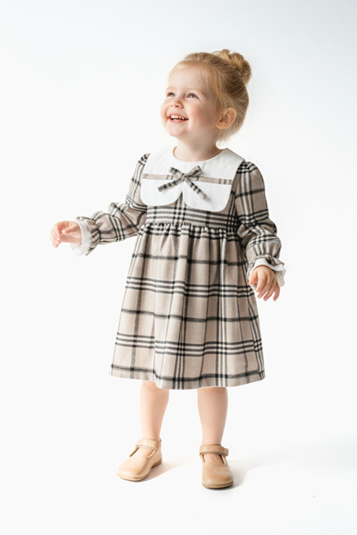 Baby Animals Kız Bebek Elbise Kız Çocuk Elbise Yakalı Doğum Günü Parti Düğün Özel Gün Uzun Kol Astarlı Kurdela