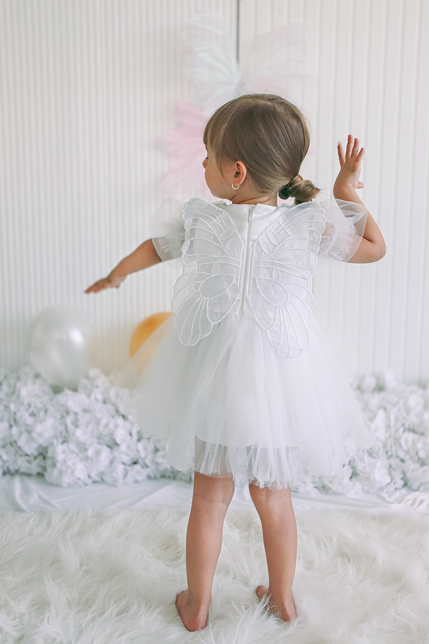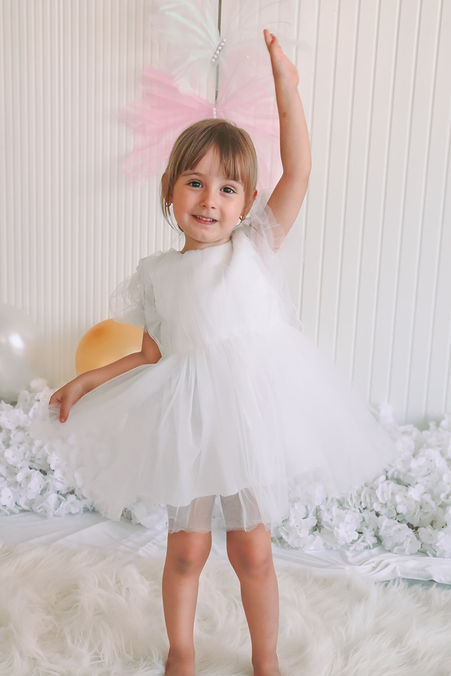 Baby Animals Kız Bebek Kız Çocuk Doğum Günü Parti Düğün Elbise Balonkol Kanatlı Tüllü Tütülü Tütü Astarlı