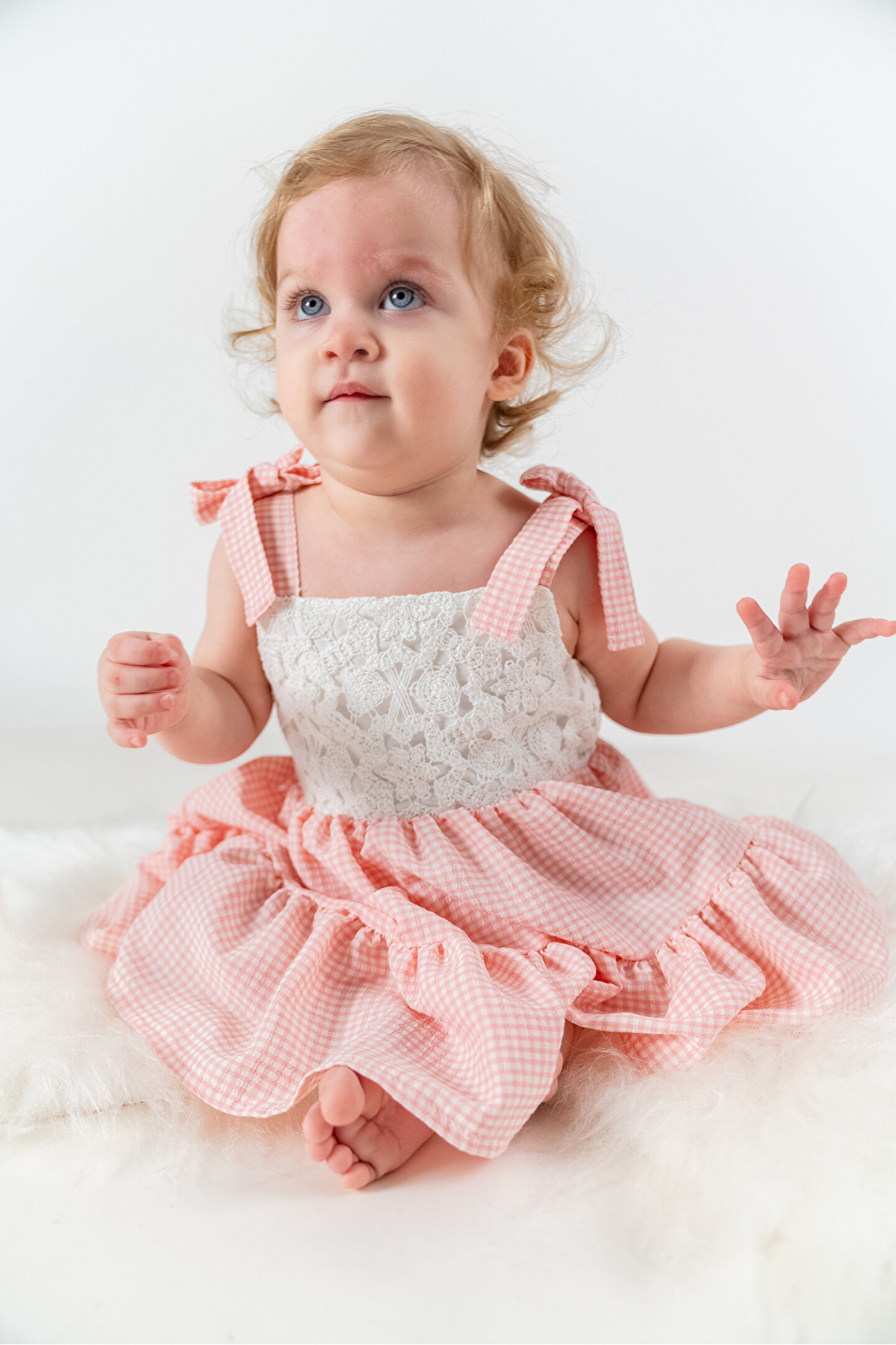 Yazlık Kısa Kollu Kolsuz Askılı Dantel Detaylı Astarlı Kız Çocuk Elbisesi: Küçük prensesinizin yaz mevsiminde özel günlerde zarafetini ve şıklığını ön plana çıkaracak bu elbise, önünde bulunan fiyonk detayı ve dantel işlemeleriyle tasarlanmıştır.; Ayrıca etek kısmında bulunan yırtmaç detayı, hareket özgürlüğü sağlarken bebeğinizin zarif bir görünüm sergilemesini sağlar.; Özellikler: Dantel Detaylar: Elbisenin ön kısmında ve kollarda bulunan dantel detaylar, zarafet ve incelik katarken, küçük prensesinizin görünümünü daha etkileyici hale getirir.; Önünde Fiyonk Detayı: Elbisenin ön kısmında bulunan fiyonk detayı, sevimliliği ve şıklığı artırır.; Küçük prensesinizin görünümüne hoş bir dokunuş ekler.; Yırtmaç Detayı: Etek kısmında bulunan yırtmaç detayı, hareket özgürlüğü sağlarken, elbisenin tasarımına dinamizm katar.; Kısa Kollu Tasarım: Sıcak yaz günlerinde rahatlıkla giyilebilecek kısa kollu tasarım, bebeğinizin serin kalmasını sağlar ve özgürce hareket etmesine olanak tanır.; Yazlık Kullanıma Uygun: Hafif yapısı ve nefes alabilen kumaşıyla yaz aylarında rahatlıkla giyilebilir.; Özel Günler İçin Uygun: Özel günlerde tercih edilebilecek şık tasarımıyla bebeğinizin her anında göz kamaştırmasını sağlar.; Bu yırtmaçlı, önü fiyonklu ve dantel detaylı kısa kollu Kolsuz Askılı kız çocuk elbisesi, küçük prensesinizin yazın serin ve şık kalmasını sağlarken, aynı zamanda özel günlerde de zarafetini tamamlar.; Zarif detaylarıyla bezenmiş bu elbise, bebeğinizin tarzını ve güzelliğini ön plana çıkarır.