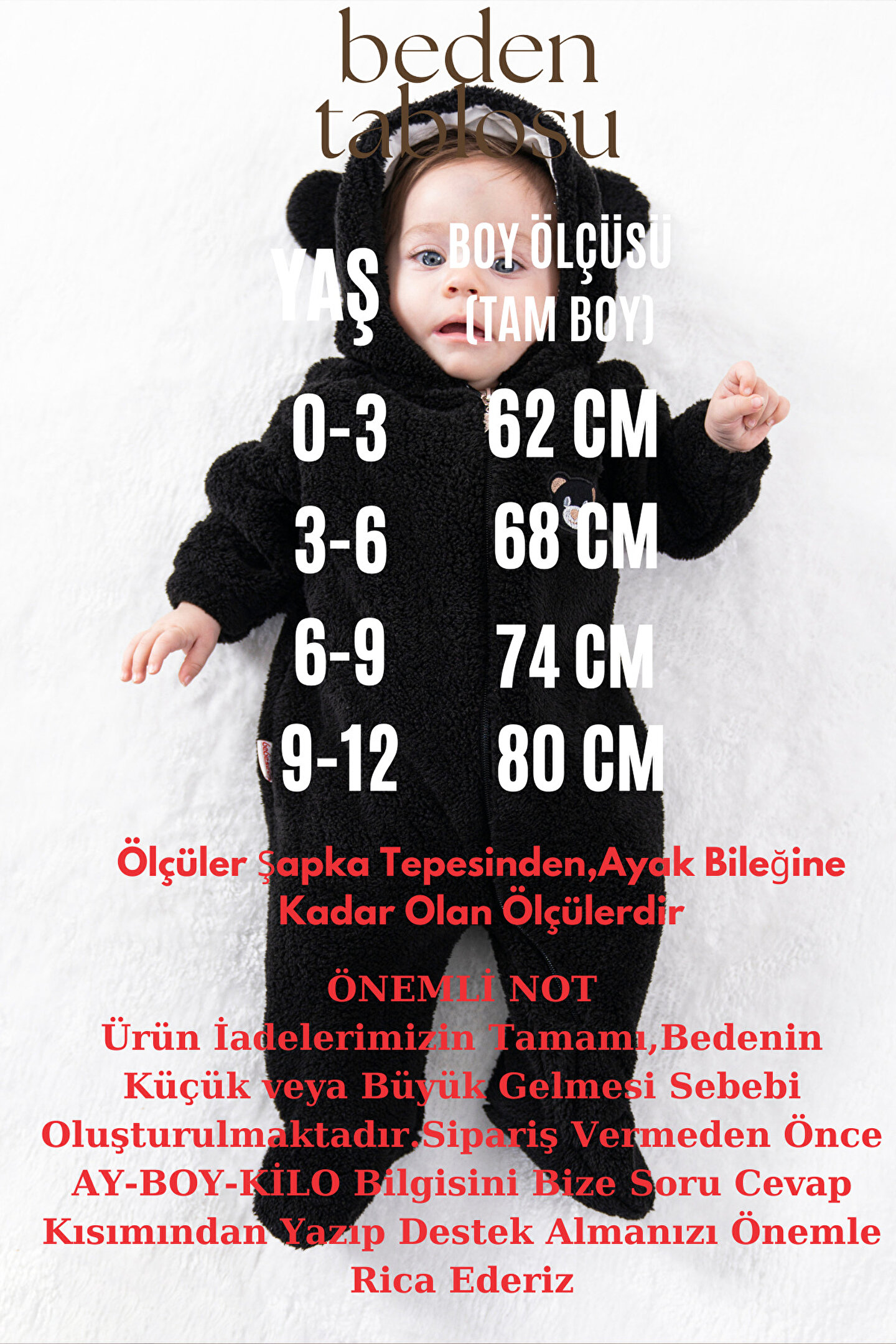 - Bebeğinizin cildine zarar vermeyen organik kumaştan üretilmiştir, güvenle kullanabilirsiniz.; - Standart boy ve rahat kalıbı ile bebeğinizin hareket özgürlüğünü kısıtlamaz.; - Uzun kollu tasarımı sayesinde bebeğinizin kollarını sıcak tutar ve soğuk kış günlerinde ideal koruma sağlar.; - Fermuarlı yapısı ile kolay giydirme ve çıkarma imkanı sunar, pratik kullanım sağlar.; - Düz deseniyle sade ve şık bir görünüm sergiler, her türlü kombinle uyum sağlar.; - Unisex tasarımı sayesinde hem kız hem erkek bebekler için uygundur; cinsiyet ayrımı gözetmeksizin herkes için idealdir.; - Siyah rengi ile leke tutmaz özelliğe sahiptir; sık yıkamalarda bile renk solması yapmaz.; - Dokuma kumaş tipi, dayanıklılığı artırarak uzun süreli kullanım vaat eder.; - Günlük kullanım için idealdir; evde, parkta ya da seyahatte rahatlıkla tercih edilebilir.; - Sürdürülebilirlik detayına sahip olmasıyla çevre dostu bir seçimdir; doğaya duyarlı ebeveynler için mükemmeldir.