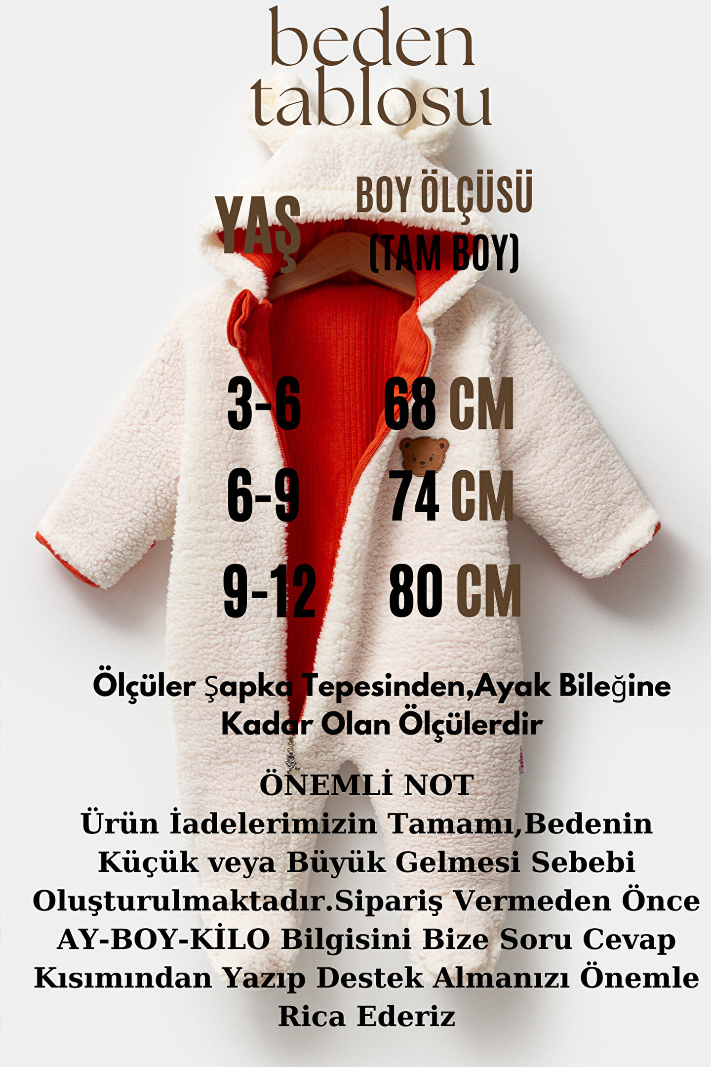 Hoş Polar Welsoft Kuzu kumaştan üretilen ve sevimli hayvan figürleriyle süslenmiş unisex Bebek Tulumlarımızla küçük çocuğunuzu hem rahat hem de sevimli tutun.; Bu tulumlar günlük kullanım için tasarlanmış olup bebeğinizin günlük maceraları için sıcaklık ve stil sağlar.; Unisex Çekiciliği: Bu tulumlar hem erkek hem de kız bebekler için uygundur, bu da onları günlük giyim için çok yönlü bir seçim haline getirir.; Günlük Konfor: Polar Welsoft Kuzu kumaştan üretilen bu tulumlar olağanüstü yumuşaktır ve bebeğinizin gün boyu rahat ve mutlu kalmasını sağlar.; Sevimli Hayvan Figürleri: Sevimli hayvan figürleriyle süslenen tulumlar, bebeğinizin kıyafetine eğlenceli ve sevimli bir dokunuş katıyor.; Uzun Kollu Üst: Tulumun uzun kollu üst kısmı, bebeğinize günlük aktiviteleri sırasında ekstra sıcaklık ve koruma sağlar.; Rahat Giydirme: Kolay giydirmek için tasarlanan bu tulumlar,fermuar kapamalara sahip olup, ebeveynlerin bebeklerini hızlı ve sorunsuz bir şekilde değiştirmelerini kolaylaştırır.; Çok Yönlü Günlük Giyim: İster oyun zamanı, ister geziler, ister evde rahat bir gün olsun, bu tulumlar çeşitli günlük aktiviteler için mükemmeldir.; Polar Welsoft Kuzu Kumaştan, Sevimli Hayvan Figürlü Uniseks Bebek Tulumlarımız, bebeklerinin günlük kıyafetlerinde hem rahatlığı hem de şıklığı ön planda tutan ebeveynler için tasarlandı.; 6 aydan 12 aya kadar olan bebekler için uygun olan bu tulumlar, günlük maceralar boyunca sıcak ve sevimli kalmalarını sağlıyor.; Bebeğinize hoş Polar Welsoft Kuzu kumaş ve büyüleyici hayvan figürleriyle rahat ve sevimli tulumlar giydirin.; Şimdi sipariş verin ve küçük çocuğunuz için her günü keyifli ve konforlu bir deneyime dönüştürün.