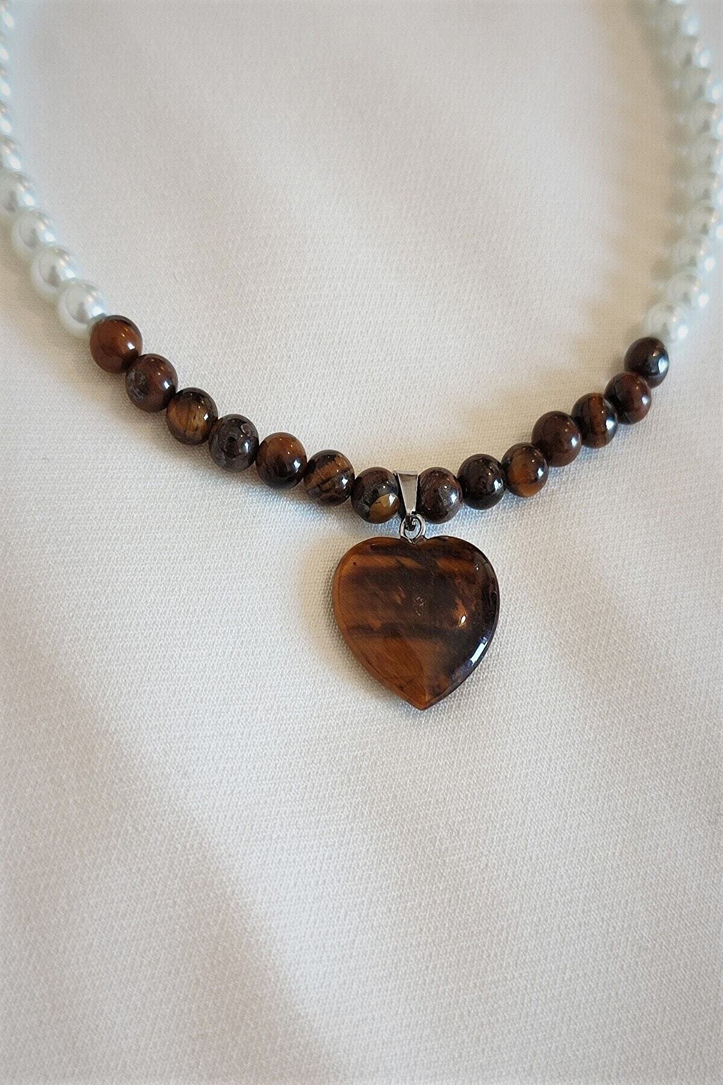 badeaccessories 6 Mm Kalplangözü, Cam Inci Doğaltaş Choker Kolye