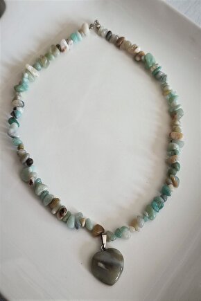 Amazonit taşı, doğanın sunduğu nadide güzelliklerden biridir ve bu özel kolyede zarifçe işlenmiş.; Doğal taş kullanımı sayesinde her parça benzersizdir; her biri kendine özgü dokunuşlarla hayat bulur.; Bu kolye, günlük kullanımda bileğinizde doğal bir zarafet sergilerken, aynı zamanda doğanın enerjisini taşıyarak pozitiflik hissi verir.; Amazonit taşı, duygusal dengeyi destekleyen özellikleri ile stresle başa çıkmada yardımcı olurken, aynı zamanda zihinsel netliği artırır.; Taşın kendine özgü parlaklığı ve renk geçişleri ile göz alıcı bir görünüm sunar; her ortamda dikkat çeker.;