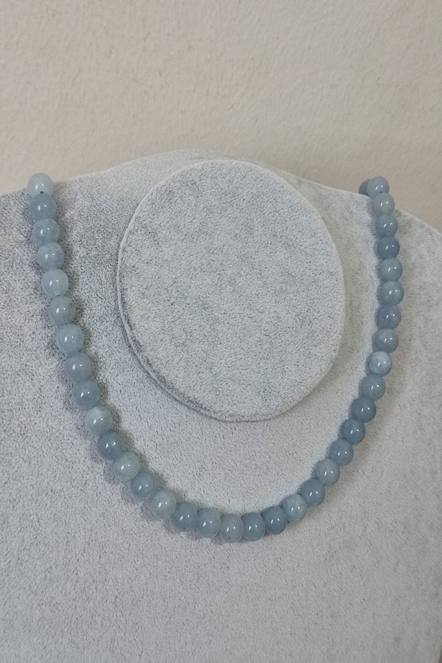 Doğal taş kullanımı sayesinde her kolye benzersiz ve otantik bir görünüm sunar; Sertifikalı 8 mm mavi kuvars doğaltaş, hem şıklığı hem de doğallığı bir arada barındırır; Mavi kuvarsın enerjik ve sakinleştirici özellikleri, günlük kullanım için ideal bir aksesuar seçeneği oluşturur; Bijuteri kolye tasarımı, modern ve zarif bir stil vurgusu yaparak her türlü kıyafetle uyum sağlar;