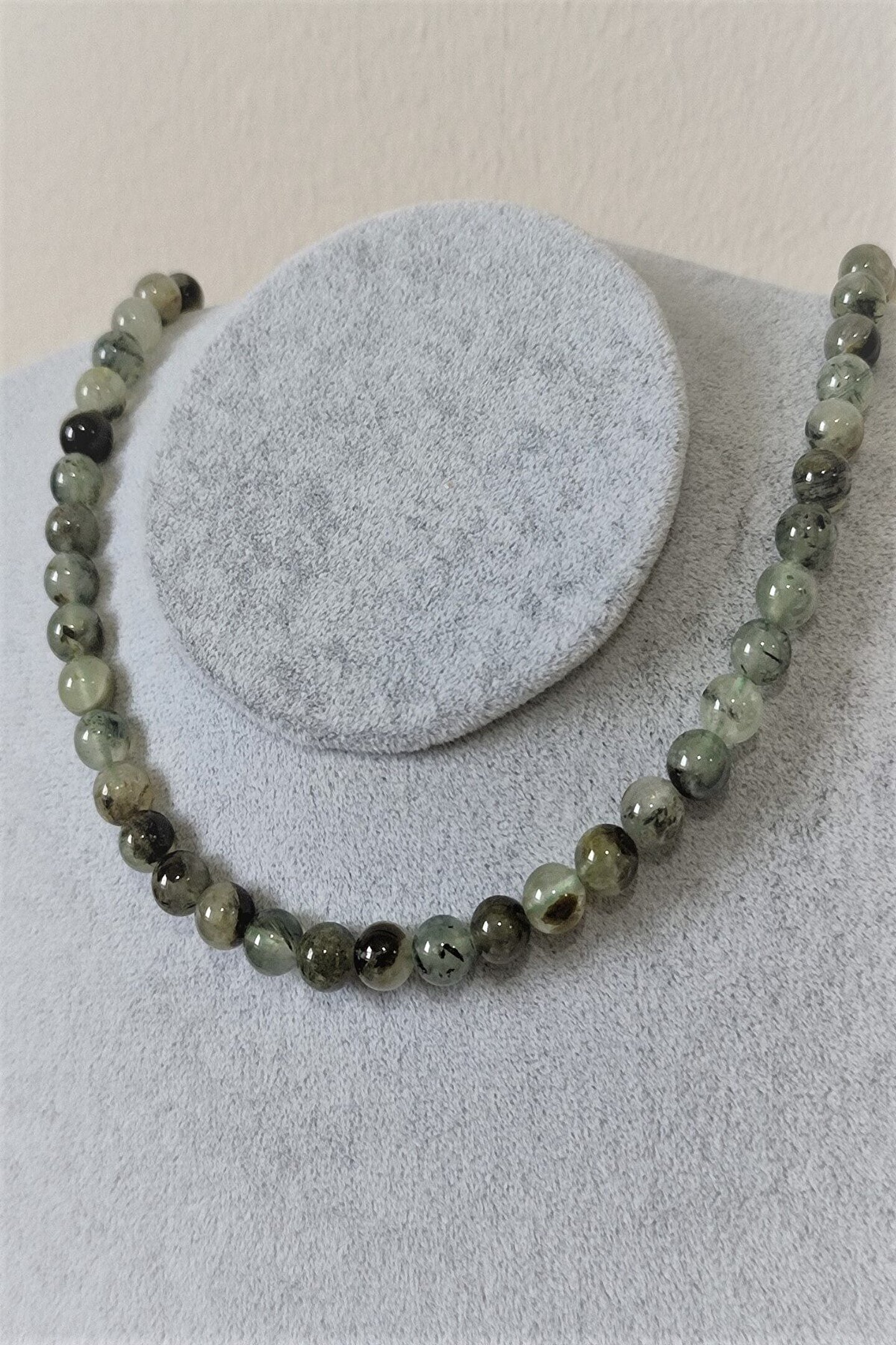Doğal taş kullanımı sayesinde her kolye benzersiz ve otantik bir görünüm sunar; 8 mm kalınlığındaki prehnit prinayt doğaltaş, zarif ve dayanıklı bir yapıya sahiptir; Sertifikalı olması, ürünün kalitesini ve orijinalliğini garanti eder; Bijuteri kolye, şıklığınızı tamamlayacak ve günlük kullanım için idealdir;