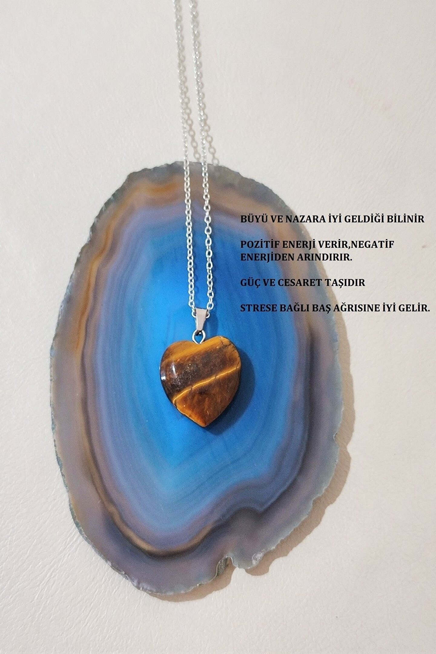 Doğal taş kullanımı sayesinde her kolye benzersiz ve otantik bir görünüm sunar; Sertifikalı kaplangözü kalp doğaltaşı, hem şıklığı hem de doğallığı bir arada barındırır; Kaliteli malzemeler kullanılarak üretilmiş olup, uzun süreli kullanım için idealdir; Özel tasarımıyla dikkat çeken bu kolye, günlük kullanımda bile zarif bir aksesuar olarak öne çıkar;