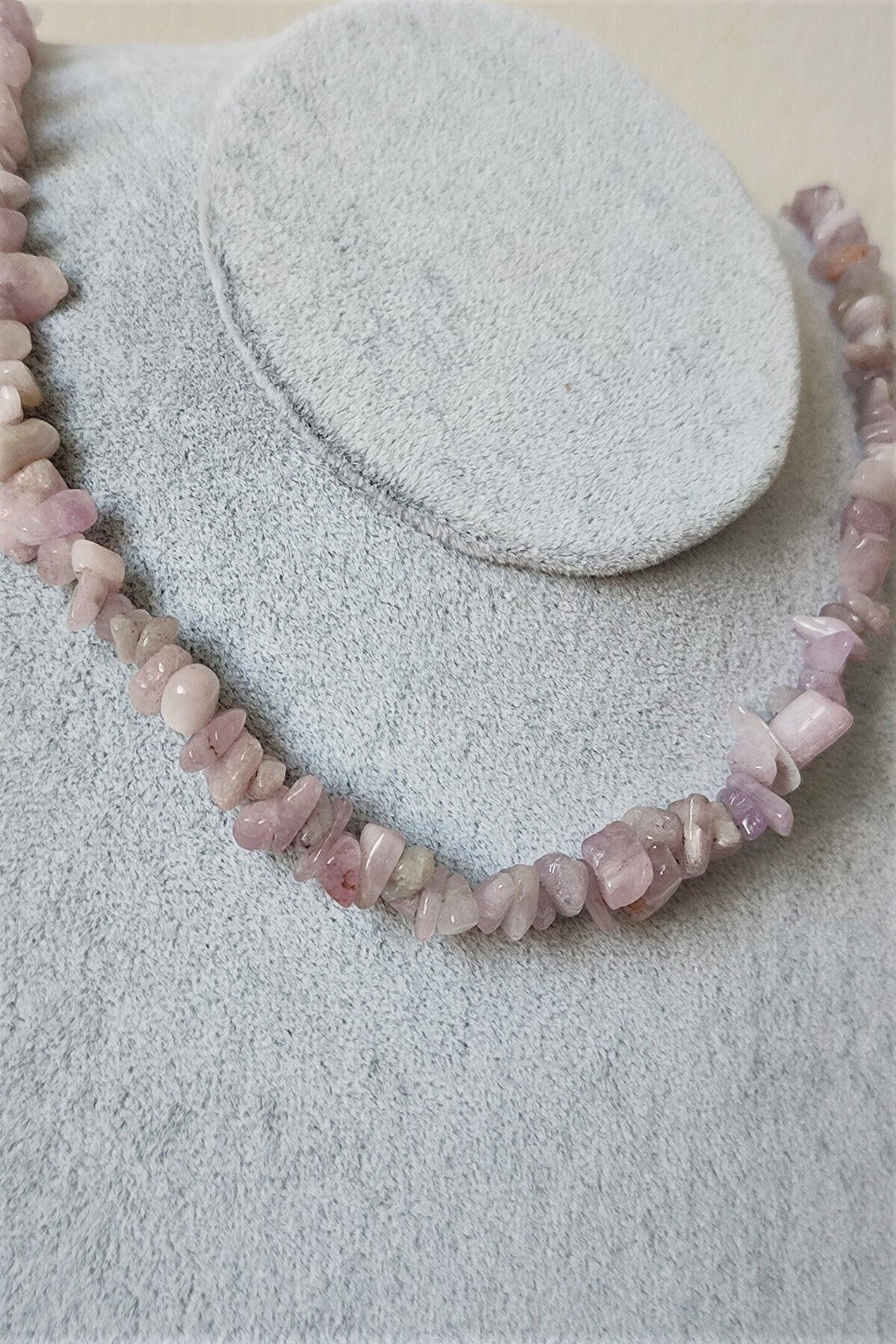 Doğal taş kullanımı sayesinde her kolye benzersiz ve otantik bir görünüm sunar; Sertifikalı kunzit kırıktaş doğaltaş, hem estetik hem de dayanıklılık açısından öne çıkar; Bijuteri kolye, zarif tasarımıyla günlük kullanımda şıklığınızı tamamlar;
