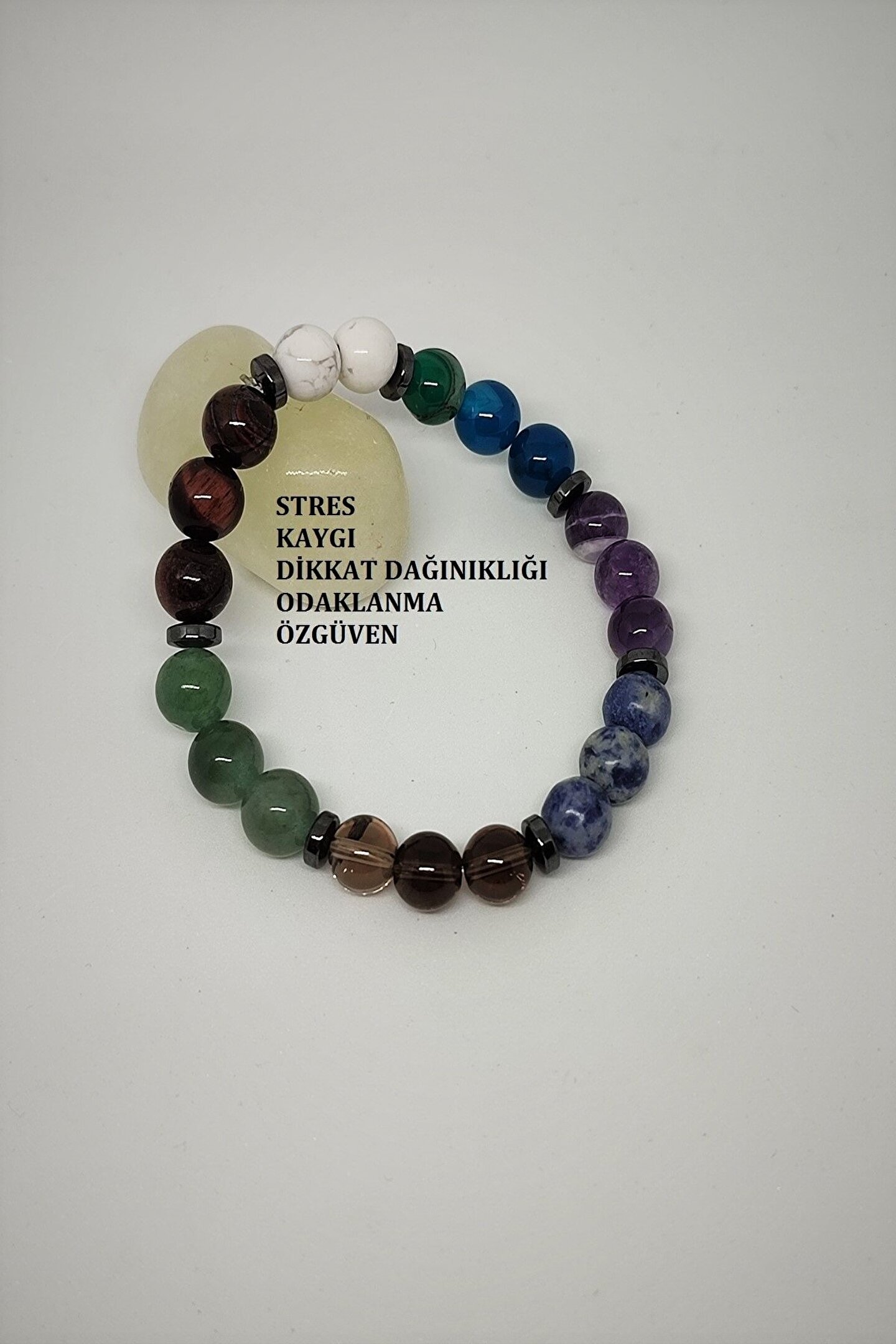 badeaccessories Sertifikalı Öğrenci Doğaltaş Bileklik (havlit, Akik, Ametist, Sodalit, Dumanlı Kuvars, Aventurin,
