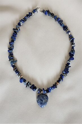 badeaccessories Sertifikalı Sodalit Kalp Kırıktaş Doğaltaş Kolye