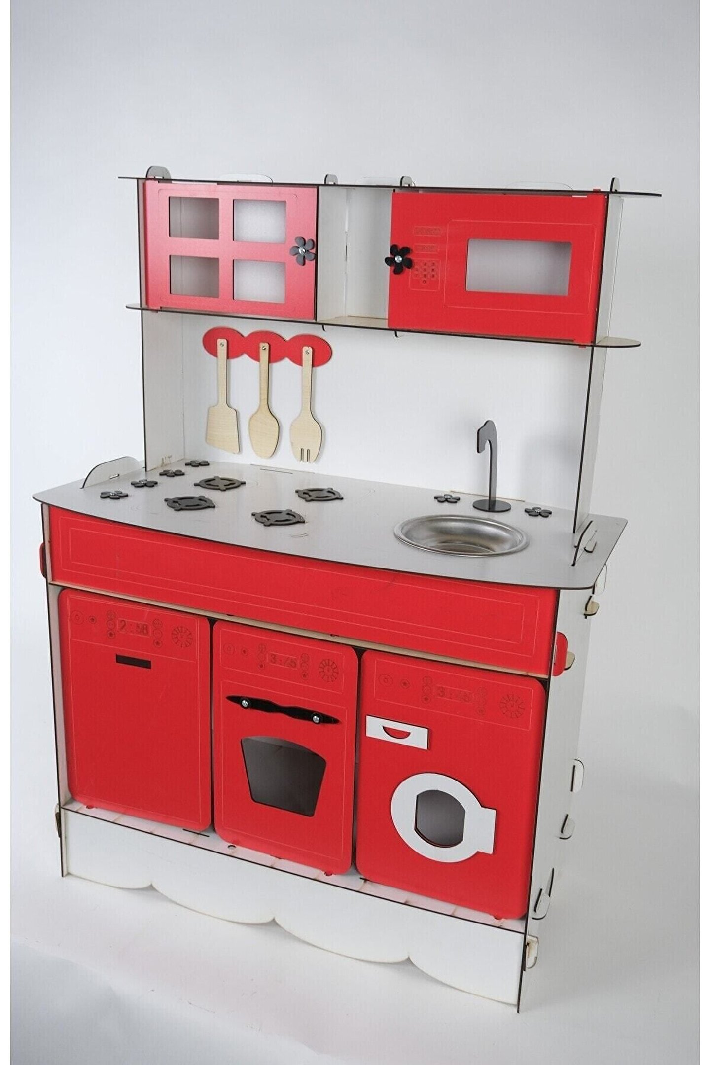 Ürün kendi imalatımız olup 3 mm 1. sınıf MDF 'den üretilmiştir. ; Tek yüz MDF değildir, ÇİFT YÜZ MDF'dir, yani her iki yüzeyi de boyalıdır. ; Genişlik 70cm, Yükseklik 100cm'dir. ; Doğum günü hediyesi olarak tercih edilen ürünler arasındadır. Evcilik oyuncakları , oyuncak mutfak setleri, eğitici oyuncaklar , kız çocuk oyuncakları alanında tercih edildiği gibi erkek çocuklar içinde oldukça talep gören bir oyuncaktır. ; Montessori etkinlikleri ne uygun olarak tasarlanmıştır, çocukların hayal gücünü ve motor becerilerini geliştirir. ; Bu ürün 3mm'dir. 6mm ürün için "Ahşap Oyuncak Mutfak 6mm" olarak inceleyebilirsiniz. Her iki üründe aynı ölçü ve özelliklerdedir sadece kalınlık farklıdır çok inceymiş açıklaması ile iade kabul edilmemektedir, 3 mm olarak binlerce kişi memnun kullanmaktadır. ; Paket içerisinde kullanım kılavuzu vardır yine de kurulum esnasında sorularınız olursa kılavuzun arkasındaki numaradan ulaşabilirsiniz. ; Kargoda hasar görmemesi için özenle paketlenmektedir, olası bir hasar durumunda parçalar ücretsiz olarak kargo edilir. ; Boyalı olduğundan boya için ayrıca uğraş gerektirmez sadece kurulum yaparak kullanıma başlayabilirsiniz. ; Farklı renklerde üretimi yapılmaktadır.;