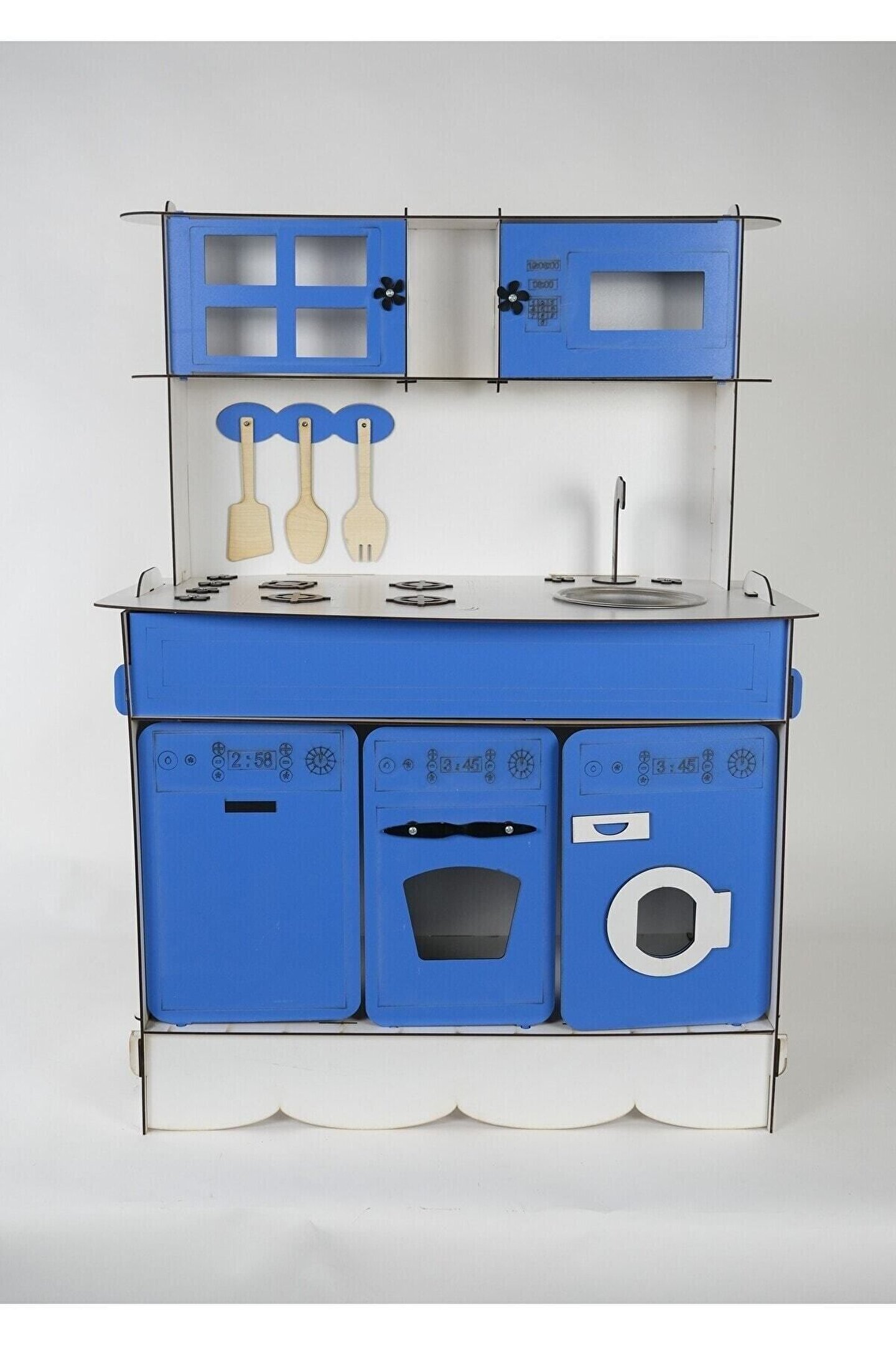 Ürün kendi imalatımız olup 3 mm 1. sınıf MDF 'den üretilmiştir. ; Tek yüz MDF değildir, ÇİFT YÜZ MDF'dir, yani her iki yüzeyi de boyalıdır. ; Genişlik 70cm, Yükseklik 100cm'dir. ; Doğum günü hediyesi olarak tercih edilen ürünler arasındadır. Evcilik oyuncakları , oyuncak mutfak setleri, eğitici oyuncaklar , kız çocuk oyuncakları alanında tercih edildiği gibi erkek çocuklar içinde oldukça talep gören bir oyuncaktır. ; Montessori etkinlikleri ne uygun olarak tasarlanmıştır, çocukların hayal gücünü ve motor becerilerini geliştirir. ; Bu ürün 3mm'dir. 6mm ürün için "Ahşap Oyuncak Mutfak 6mm" olarak inceleyebilirsiniz. Her iki üründe aynı ölçü ve özelliklerdedir sadece kalınlık farklıdır çok inceymiş açıklaması ile iade kabul edilmemektedir, 3 mm olarak binlerce kişi memnun kullanmaktadır. ; Paket içerisinde kullanım kılavuzu vardır yine de kurulum esnasında sorularınız olursa kılavuzun arkasındaki numaradan ulaşabilirsiniz. ; Kargoda hasar görmemesi için özenle paketlenmektedir, olası bir hasar durumunda parçalar ücretsiz olarak kargo edilir. ; Boyalı olduğundan boya için ayrıca uğraş gerektirmez sadece kurulum yaparak kullanıma başlayabilirsiniz. ; Farklı renklerde üretimi yapılmaktadır.;