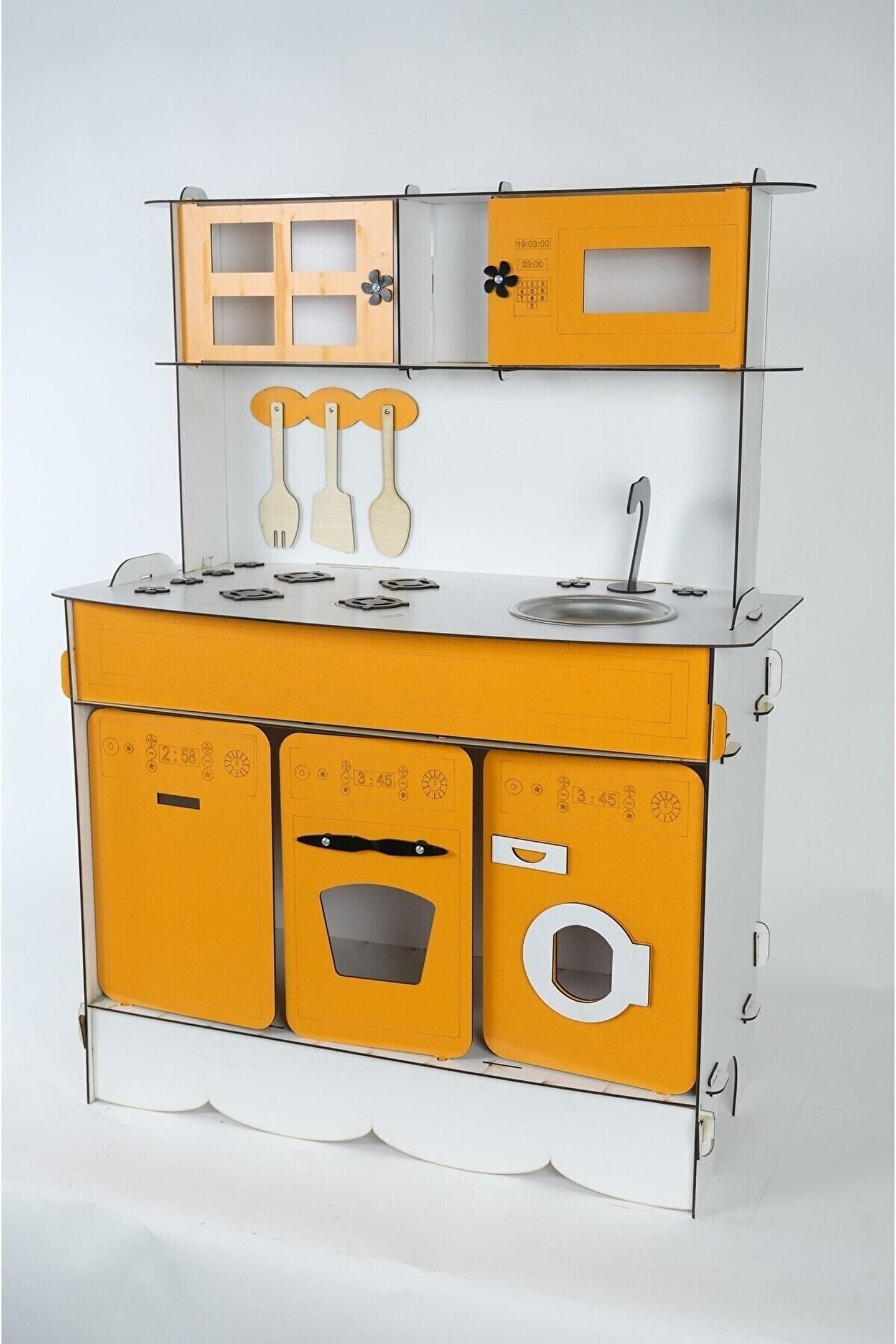 Ürün kendi imalatımız olup 3 mm 1. sınıf MDF 'den üretilmiştir. ; Tek yüz MDF değildir, ÇİFT YÜZ MDF'dir, yani her iki yüzeyi de boyalıdır. ; Genişlik 70cm, Yükseklik 100cm'dir. ; Doğum günü hediyesi olarak tercih edilen ürünler arasındadır. Evcilik oyuncakları , oyuncak mutfak setleri, eğitici oyuncaklar , kız çocuk oyuncakları alanında tercih edildiği gibi erkek çocuklar içinde oldukça talep gören bir oyuncaktır. ; Montessori etkinlikleri ne uygun olarak tasarlanmıştır, çocukların hayal gücünü ve motor becerilerini geliştirir. ; Bu ürün 3mm'dir. 6mm ürün için "Ahşap Oyuncak Mutfak 6mm" olarak inceleyebilirsiniz. Her iki üründe aynı ölçü ve özelliklerdedir sadece kalınlık farklıdır çok inceymiş açıklaması ile iade kabul edilmemektedir, 3 mm olarak binlerce kişi memnun kullanmaktadır. ; Paket içerisinde kullanım kılavuzu vardır yine de kurulum esnasında sorularınız olursa kılavuzun arkasındaki numaradan ulaşabilirsiniz. ; Kargoda hasar görmemesi için özenle paketlenmektedir, olası bir hasar durumunda parçalar ücretsiz olarak kargo edilir. ; Boyalı olduğundan boya için ayrıca uğraş gerektirmez sadece kurulum yaparak kullanıma başlayabilirsiniz. ; Farklı renklerde üretimi yapılmaktadır.;