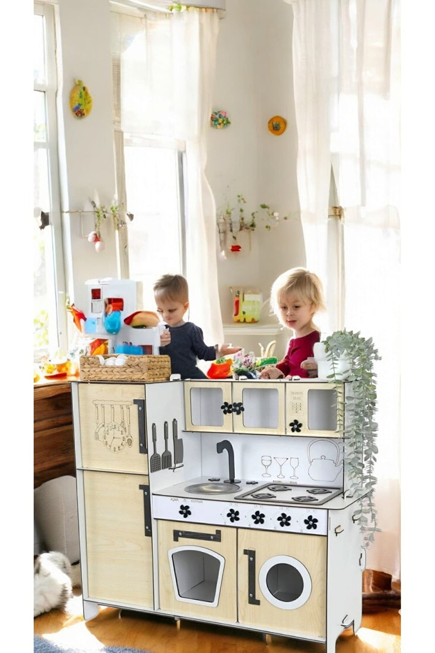 Yükseklik 70 cm. Genişlik 80 cm. ; Malzemesi 1. Sınıf 3 mm ÇİFT YÜZ MDF'dir. ; Doğum günü hediyesi olarak tercih edilen ürünler arasındadır. Evcilik oyuncakları , oyuncak mutfak setleri, eğitici oyuncaklar , kız çocuk oyuncakları alanında tercih edildiği gibi erkek çocuklar içinde oldukça talep gören bir oyuncaktır. ; Montessori etkinlikleri ne uygun olarak tasarlanmıştır, çocuklarının hayal gücünü ve motor becerilerini geliştirir. ; Bu ürün 3mm'dir. 6mm ürün için "Ahşap Oyuncak Mutfak 6mm olarak inceleyebilirsiniz, inceymiş açıklaması ile iade kabul edilmemektedir, 3 mm olarak binlerce kişi memnun kullanmaktadır. Paket içerisinde kurulum kılavuzu vardır yine de kurulum esnasında sorularınız olursa kılavuzun arkasındaki numaradan ulaşabilirsiniz. ; Kargoda hasar görmemesi için özenle paketlenmektedir, olası bir hasar durumunda parçalar ücretsiz olarak kargo edilir. Boyalı olduğundan boya için ayrıca uğraşma gerektirmez sadece kurulum yaparak kullanıma başlayabilirsiniz. 9 renk alternatifi vardır tercih ettiğiniz renk üzerinden sipariş verebilirsiniz.