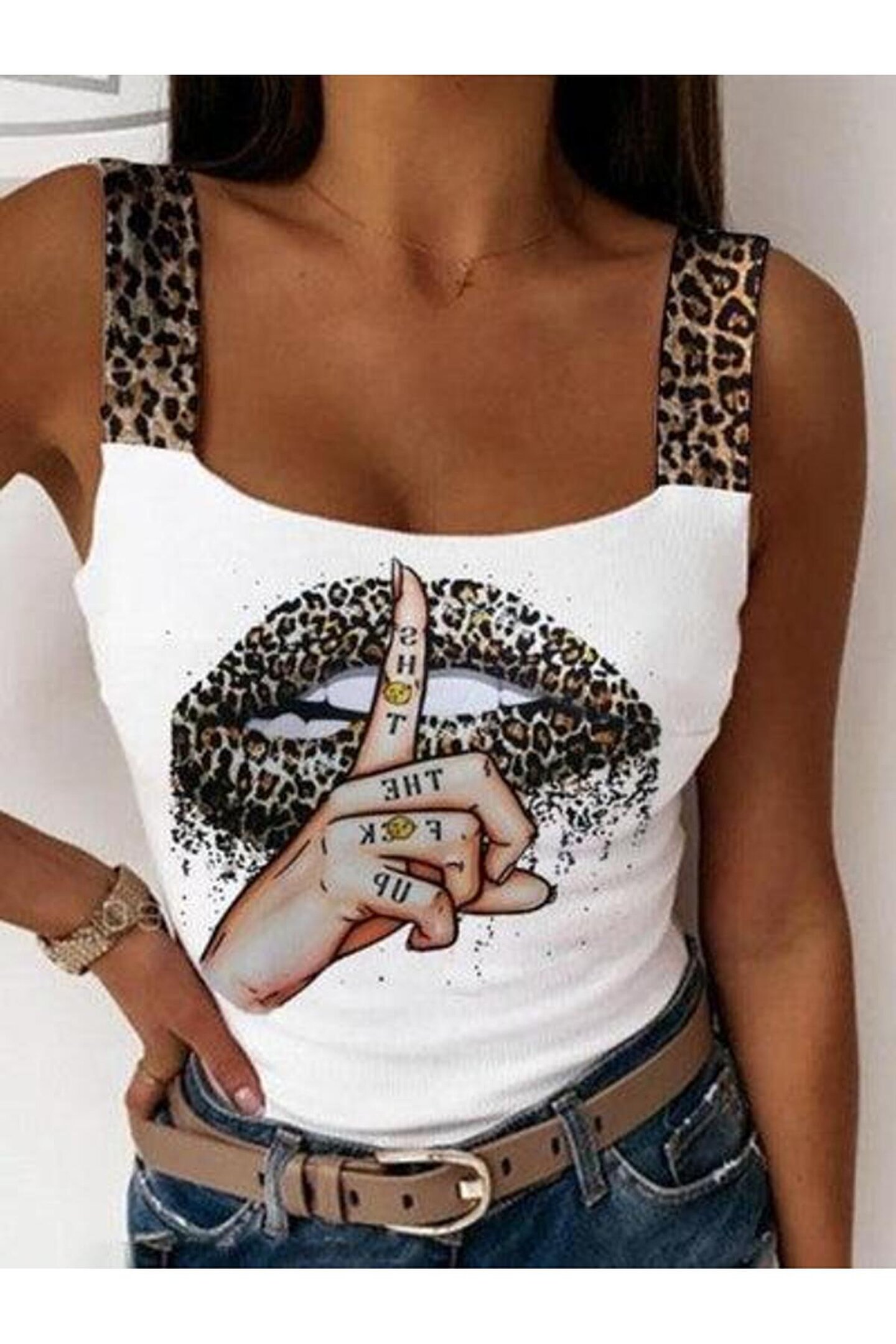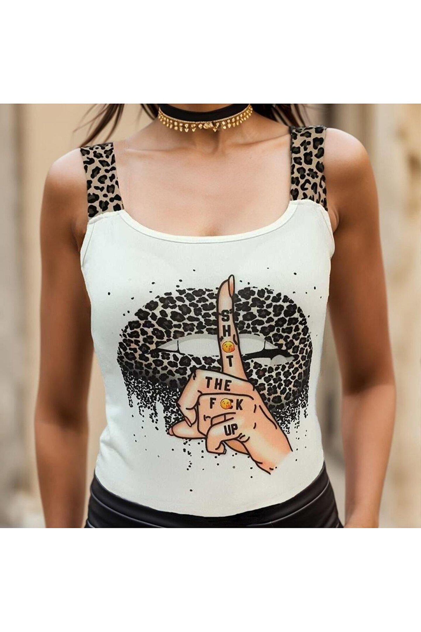 Kadın Leopar Askılı Leopar Baskılı Mikro Kumaş Bluz