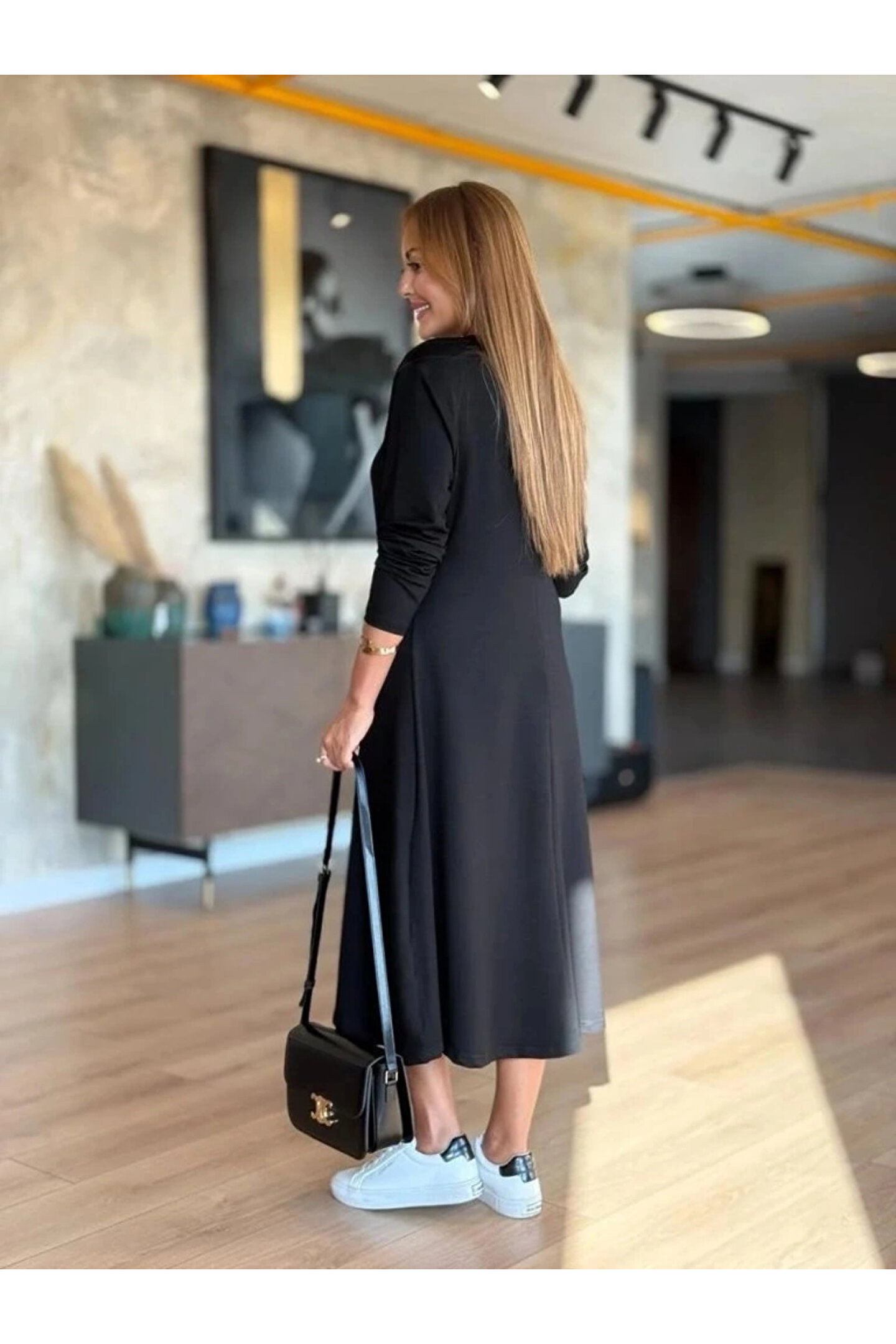BALCI Kadın Uzun Kollu V Yakalı Midi Modal Elbise