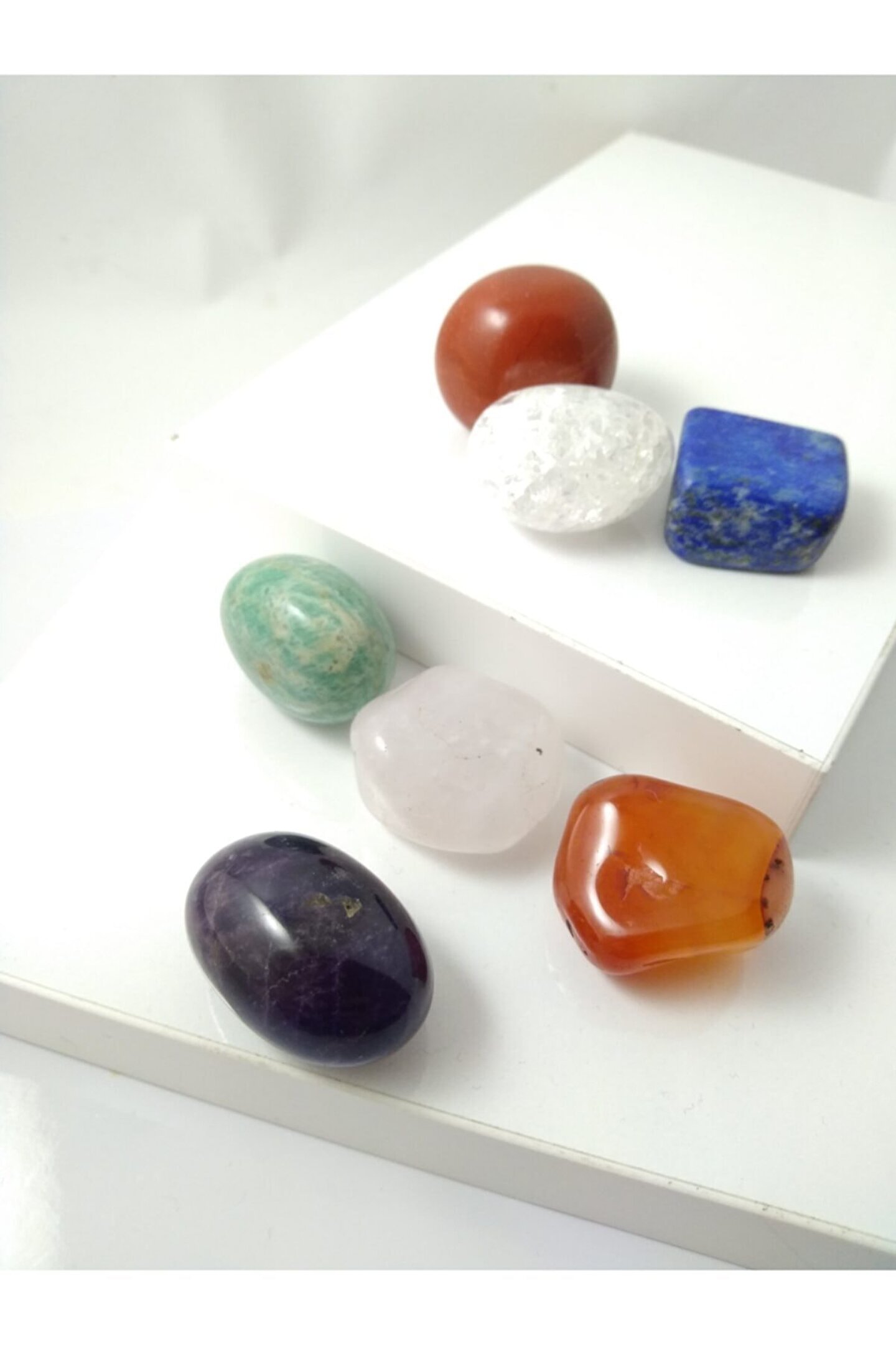 ÇAKRA TAŞLARI / 7 ÇEŞİT DOĞALTAŞ BİBLO Çakralar, bedenimizde bulunanenerji merkezleridir. Çakra sistemindeki temel amaç bedenin enerji merkezlerini harekete geçirereksağlıklı çalışmasını sağlamak, ruhsal ve bedensel bütünlüğü oluşturmaktır. Çakra taşları, değişik 7renkten oluşur. Her bir renk bir çakra katmanını simgeler. Ürünün Özellikler i; Fiyata 7çeşit doğaltaş dahildir. Üründekullanılan doğaltaşlar; ametist, lapis lazuli, aventurin, akik ve pembe kuvars,kristal kuvars ve jasper’dır. Taşlarfotoğrafta görünen kutu ile birlikte gönderilmektedir. Taşlar toplam 90/100 grarasıdır.