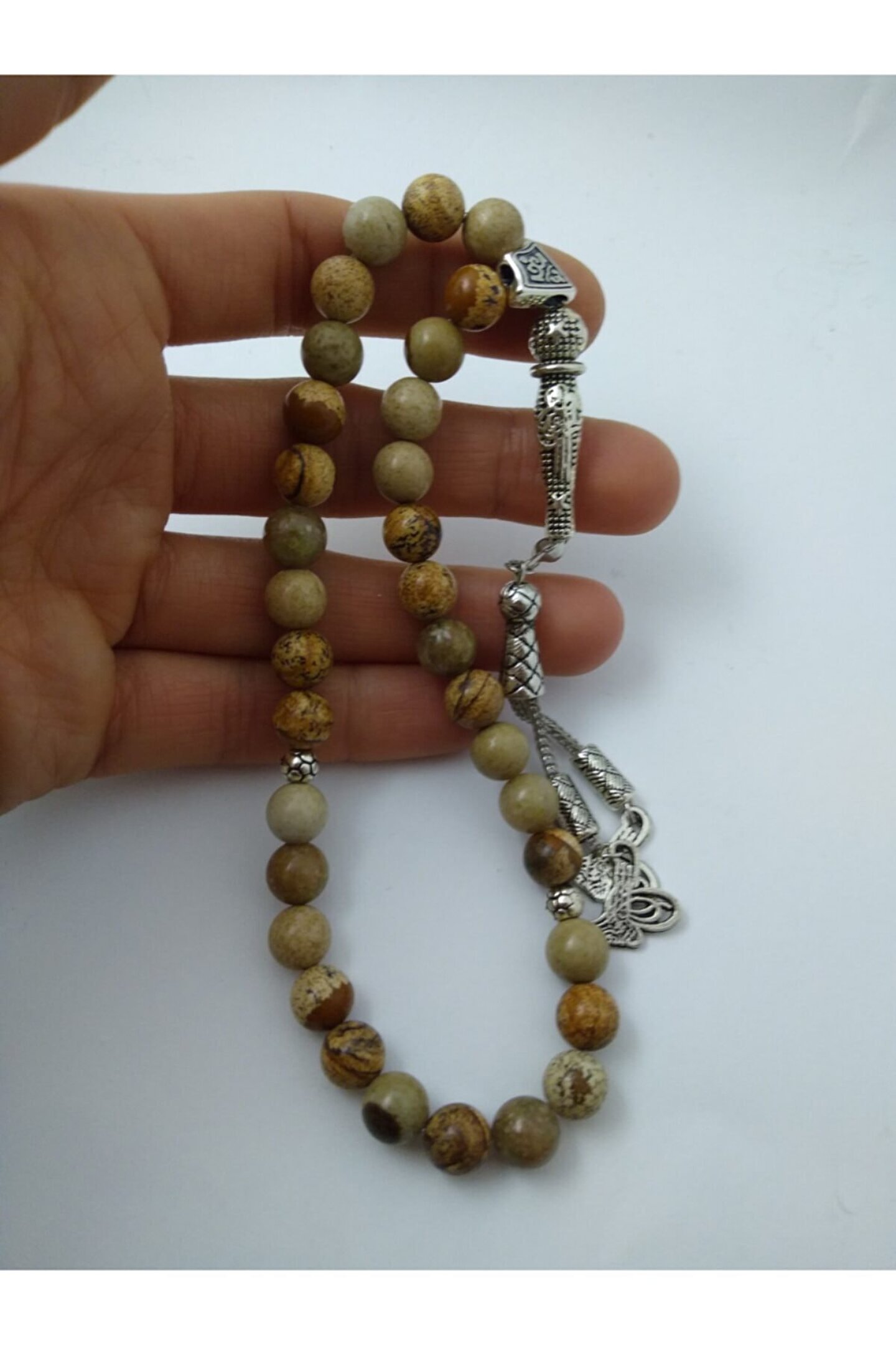 Jasper taşı tespih / doğaltaş tespih Jasper (yaşam gücü taşı):Halk arasında çakmak taşı olarak bilinen jasper taşı renkli ve damarlı bir taştır. ; Başlıca renkleri kırmızı, sarı ,yeşil,mavi, turuncu ve kahverengi tonlardan karışık damarlı bir taştır. ; Dalmaçyalı modelide mevcuttur. ; Sigarayı bırakmak isteyenler bu taşı tercih edebilirler. ; Azim ve cesaret taşıdır. ; Sinirleri yumuşatır. ; Kan yapımıma yardım eder. ; Bedendeki zararlı toksinlerin temizlenmesinde etkili olduğu, bağışıklık sistemini güçlendirdiği bilinir.Doğurganlığı arttırdığı ve vücuttaki toksinleri yok ettiği bilinmektedir. ; **bu eşsiz özelliklere sahip doğaltaş tespih neden sizin veya sevdiklerinizin olmasın..**;