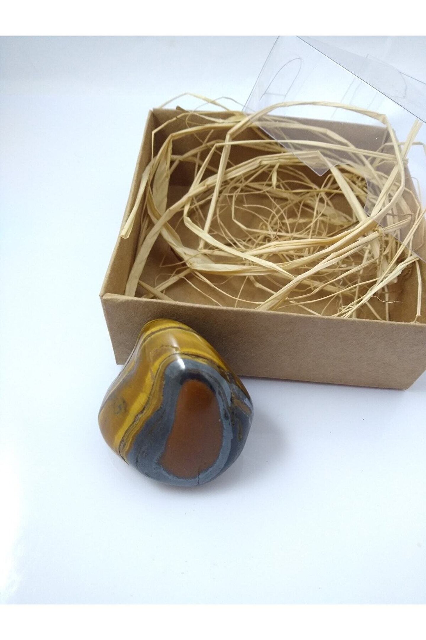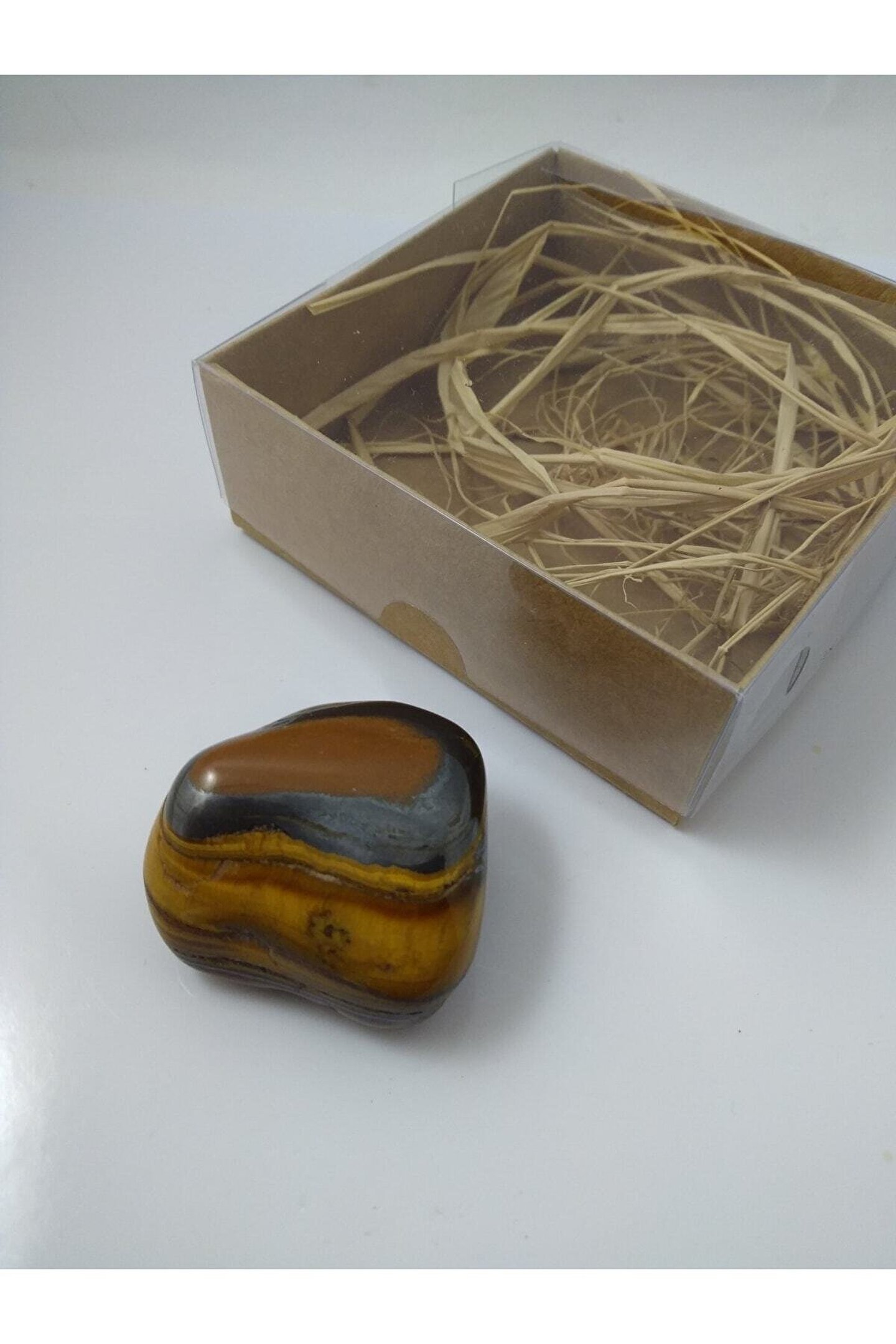 Kaplangözü taşı biblo/ ham doğaltaş biblo(45-50 gr) Kaplangözü taşı(kuvvet taşı): Güneş enerjisini depolamasıyla bilinen bugüzel taş, topraklama temin ederek negatif enerjiyi nötrler ve ilhama konsantreolunmasına yardımcı olur. Güç ve cesarettaşı olan kaplan gözü; dayanıklılığı arttırır. Fiziksel bağımlılıklara karşı iradeyidestekler. Hiperaktiviteyi dizginlemesiyle bilinen kaplangözü taşı aynı zamandalibido arttırıcı özelliğe sahiptir.