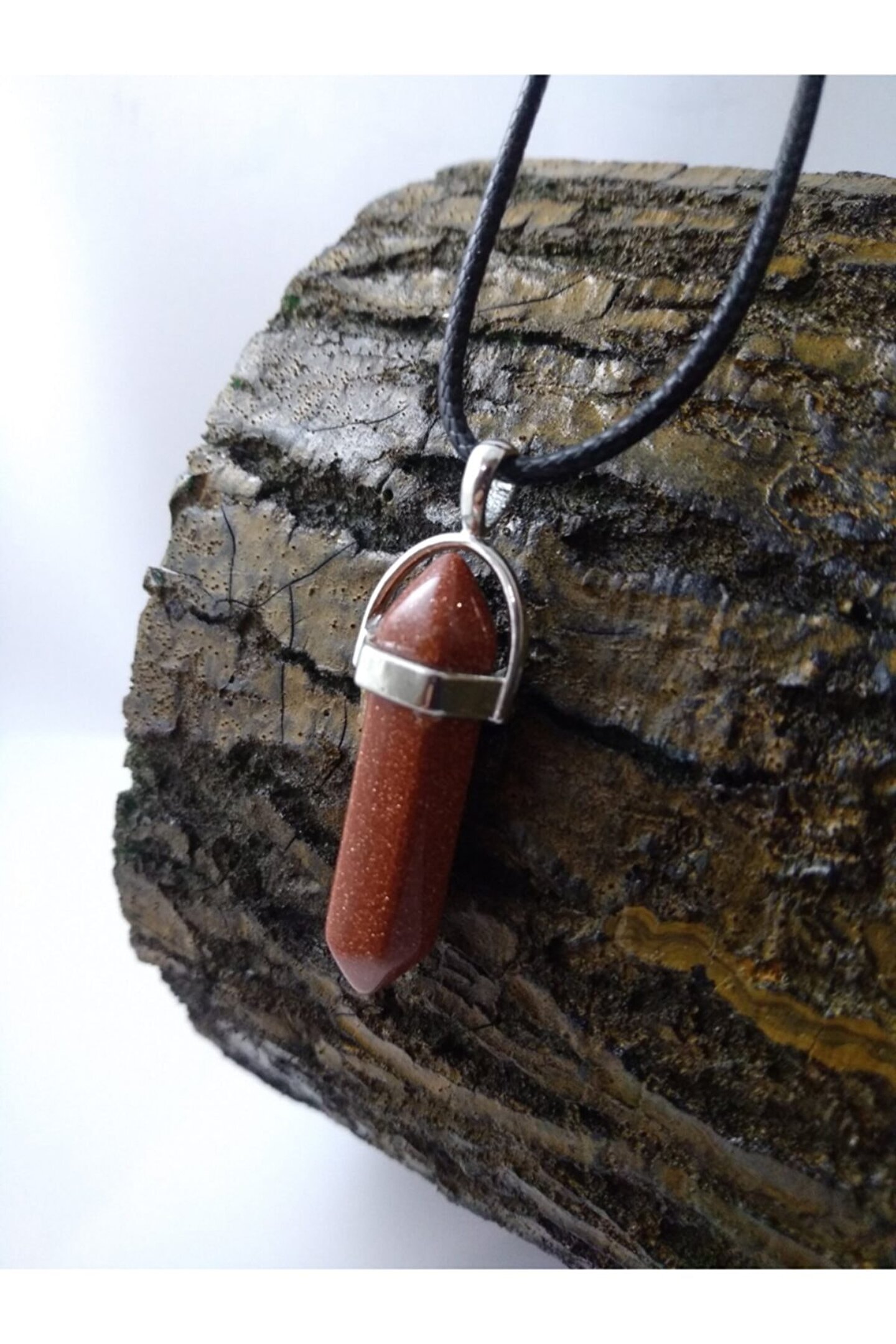 YILDIZ TAŞI KOLYE/ ÇİVİ ŞEKLİNDE DOĞALTAŞ KOLYE YILDIZ TAŞI(Aşk ve Neşe Taşı): Yıldız taşının faydalarından en bilineni kişinin açık yürekliliğini sembolize eder.Hayal taşı olarak da bilinir. Enerji gücü çok yüksek bir taştır. Sert görünümlü insanların görünüşleri ve duygularında yumuşama sağladığı bilinmektedir. Kişiye neşe, mutluluk, huzur ve yaşama sevinci verdiğine inanılır. Ürünün Özellikleri; Ürünlerimiz gerçek doğal taş olup çivi şekli ile tasarlanmıştır. Ürünümüz size hediye kutusu içinde gönderilecektir. Parfüm, Alkol v.b. gibi Maddeler ile Temasından Kaçınılmalıdır. Boyutu yaklaşık 3,5 cm'dir Suni Deri ip uzunluğu: 43 cm. Paket İçeriği: 1 adet