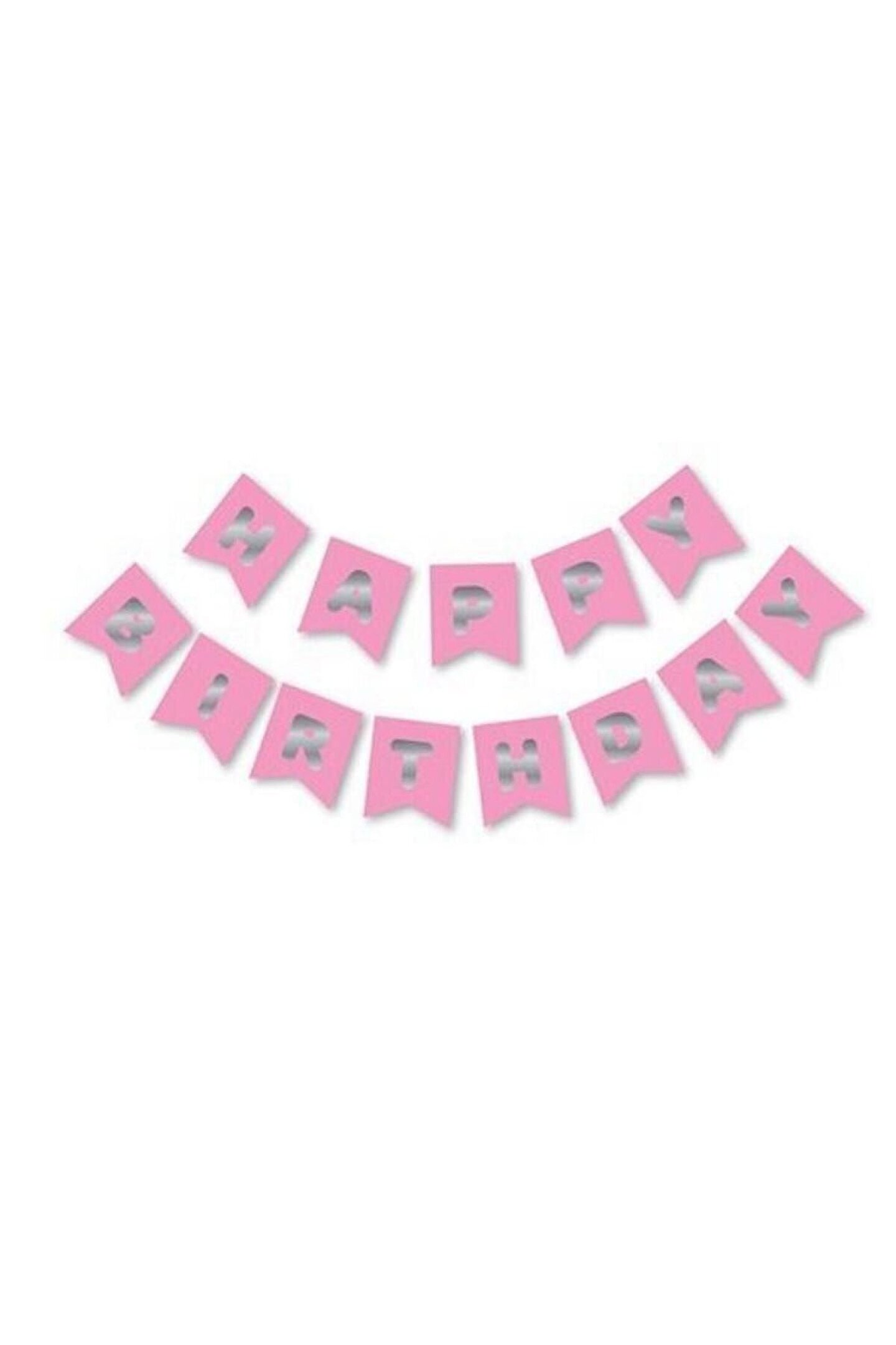 Happy Bırthday Pembe Gümüş Varaklı Banner Yazı