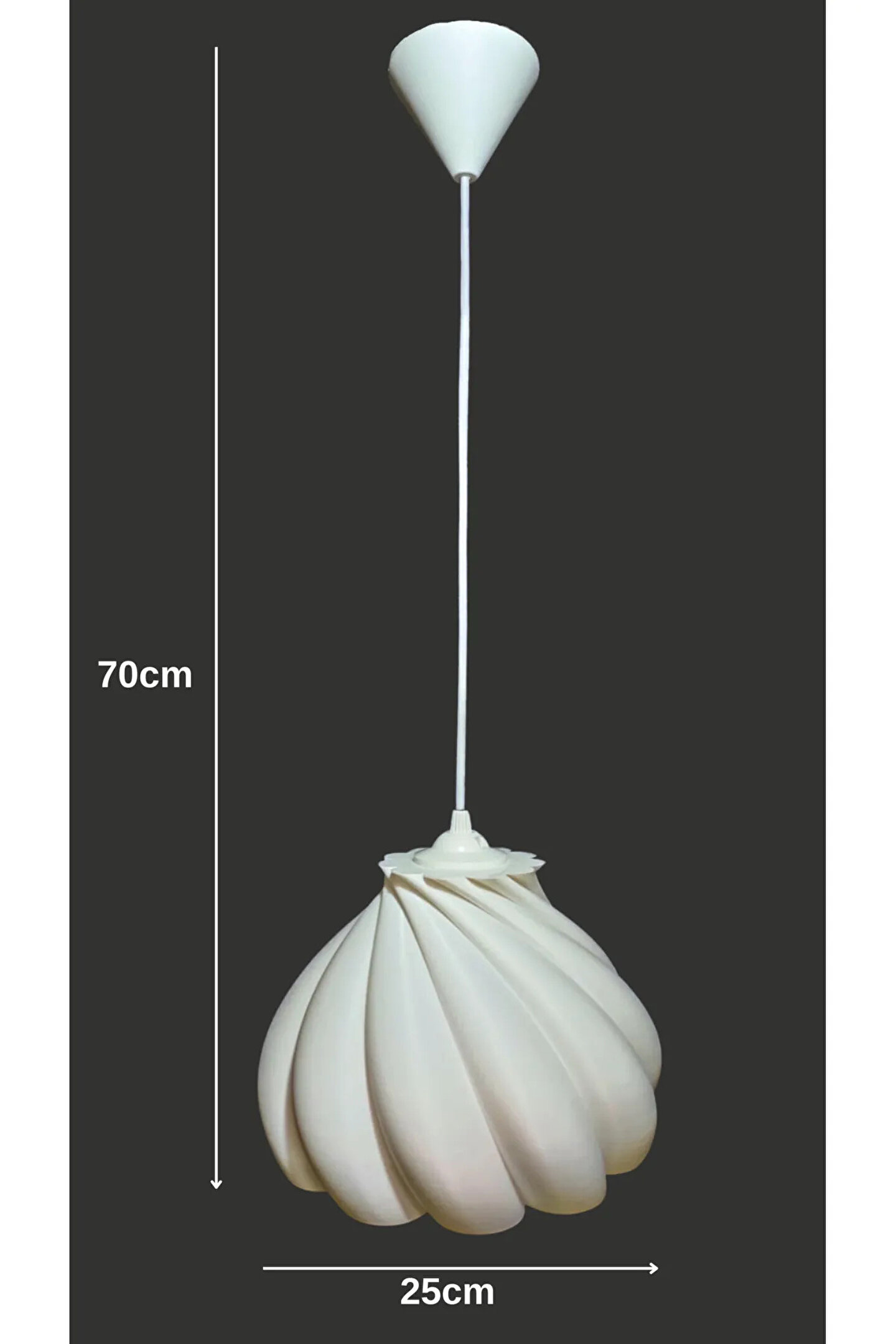 - Modern tasarımıyla dikkat çeken bu tekli avize, yatak odası, mutfak veya oturma odası gibi çeşitli alanlarda şıklığı ve fonksiyonelliği bir arada sunar.; - 25x25 cm boyutlarındaki bu avize, ideal ölçülerdeki tasarımı ile mekanınıza uyum sağlar ve dekorasyonunuzu tamamlar.; - Plastik materyali sayesinde hafif ve dayanıklı yapısıyla kolay montaj imkanı sunar; aynı zamanda temizliği de oldukça pratiktir.; - E27 duy tipine sahip ampul başlığı ile geniş uyumluluk gösterir; böylece farklı ampul seçeneklerini rahatlıkla kullanabilirsiniz.; - Türkiye'de üretilen bu ürün, yerel kaynaklı malzemelerle sürdürülebilir bir üretim sürecine katkıda bulunurken aynı zamanda kalite standartlarını da korur.; - Modern modeliyle çağdaş yaşam alanlarına uygun estetik görünümüyle göz alıcı bir atmosfer yaratır.; - Tekli yapısı sayesinde odanızda tek başına veya diğer avizelerle kombinasyon halinde kullanılabilir; böylece kişisel zevkinize göre özelleştirme imkanına sahip olursunuz.; : Pumpkin; Ürünümüz 70Cm Sarkıt kabloludur; Dilediğiniz kadar kısaltabilirsiniz; Ürün ebatları Genişlik:25cm Yükseklik:25cm; Max 60 Watt'a eşdeğer 10 Watt Led ampül kullanımına uygundur; Duy Tipi: E27; Ürüne ampül dahil değildir; Avizemiz %100 dönüştürülebilir Polietilen Plastik hammadeden imal edilmiştir; Ürünümüz Salon,Oturma Odası,Çocuk Odası,Antre,Hol,Bebek Odası,Yatak Odası,İç Mekan kullanımlarına uygundur; on