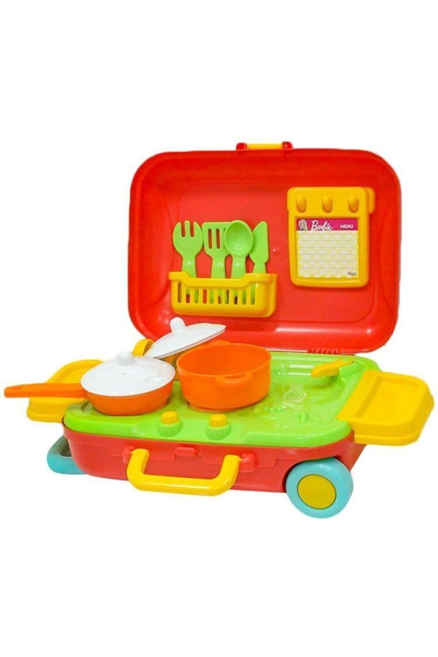 Barbie Kız Çocuk Oyuncak Mutfak Seti Tencere Tava Çatal Kaşık 15 Parça Çekçekli Tekerlekli Bavulum