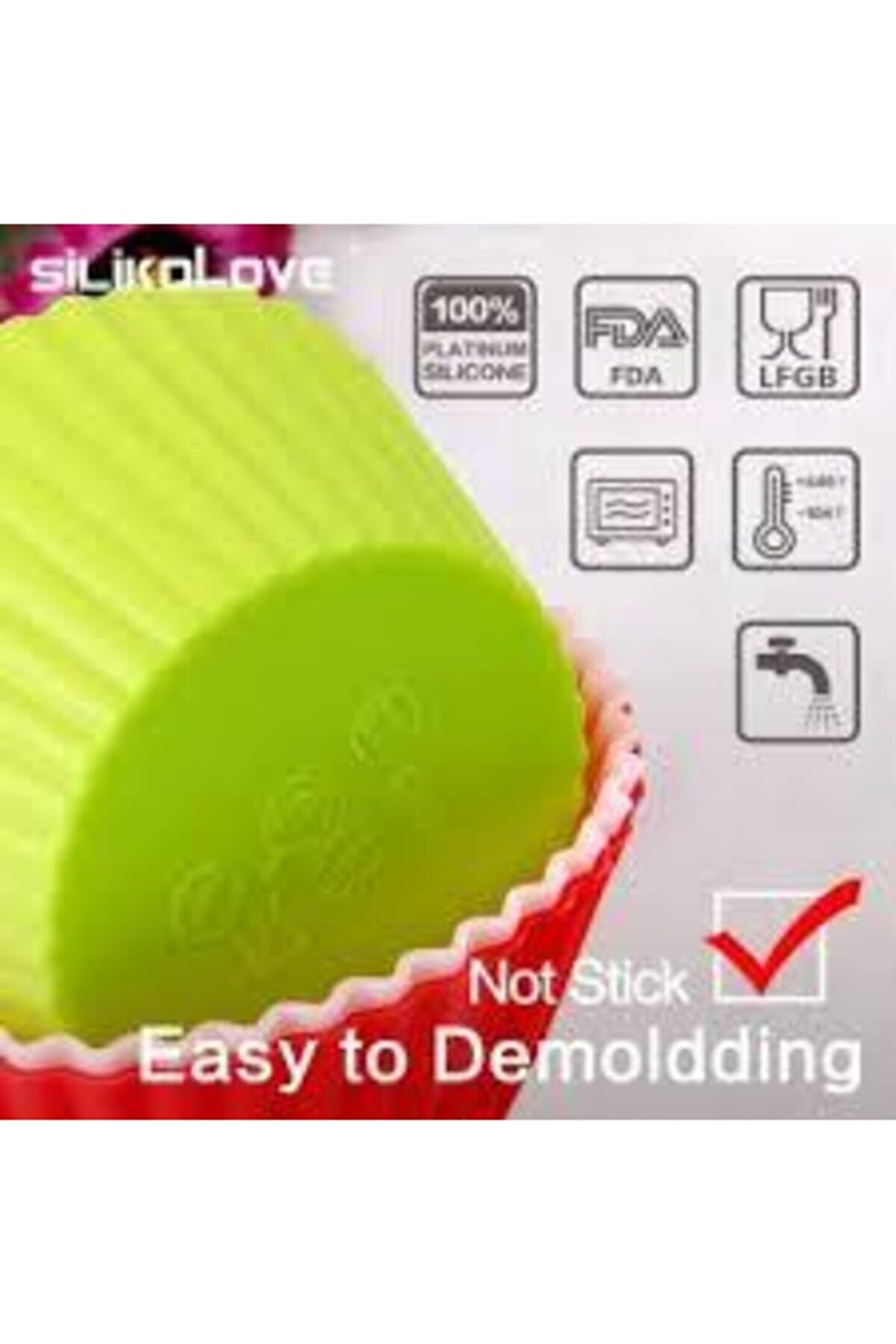 Baroness 6lı Yapışmaz Yeşil Silikon Muffin Mini Kek Kalıbı