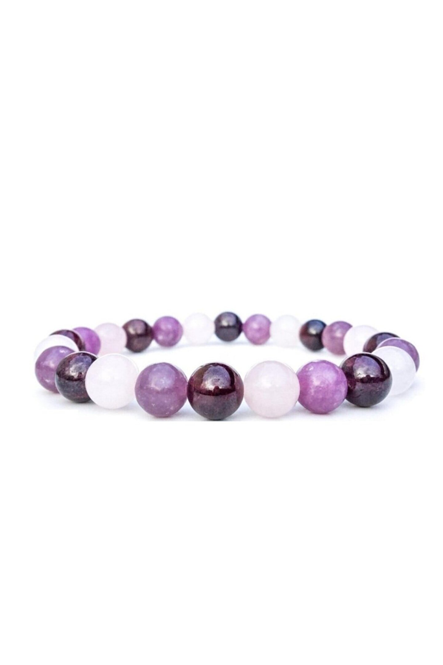 bedahşan Lal Granat, Ametist Ve Pembe Kuvars Doğal Taş Bileklik 8 Mm