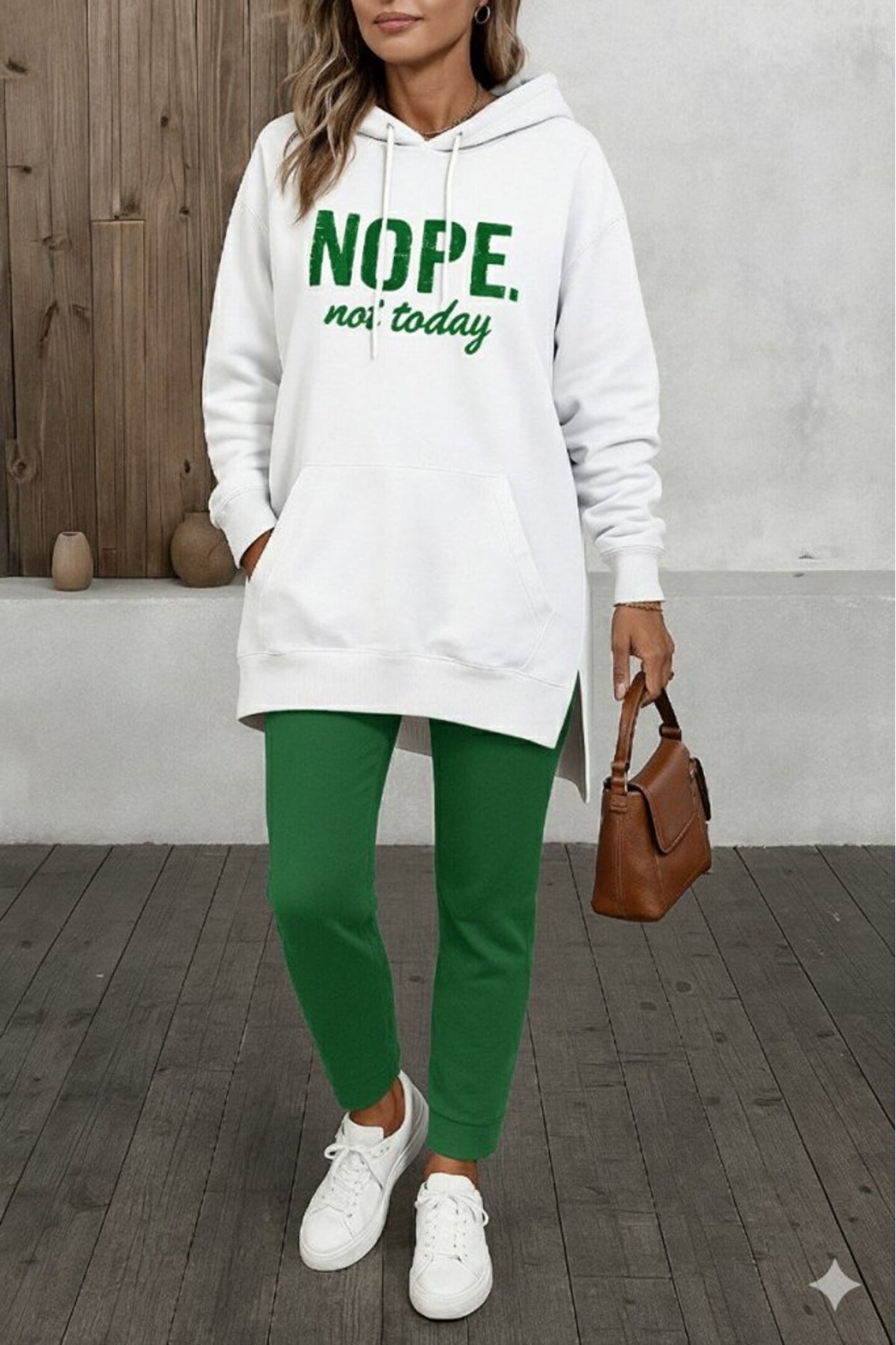Kadın Uzun Kollu Kapşonlu Bağcıklı Viskon Iki Iplik Sweat